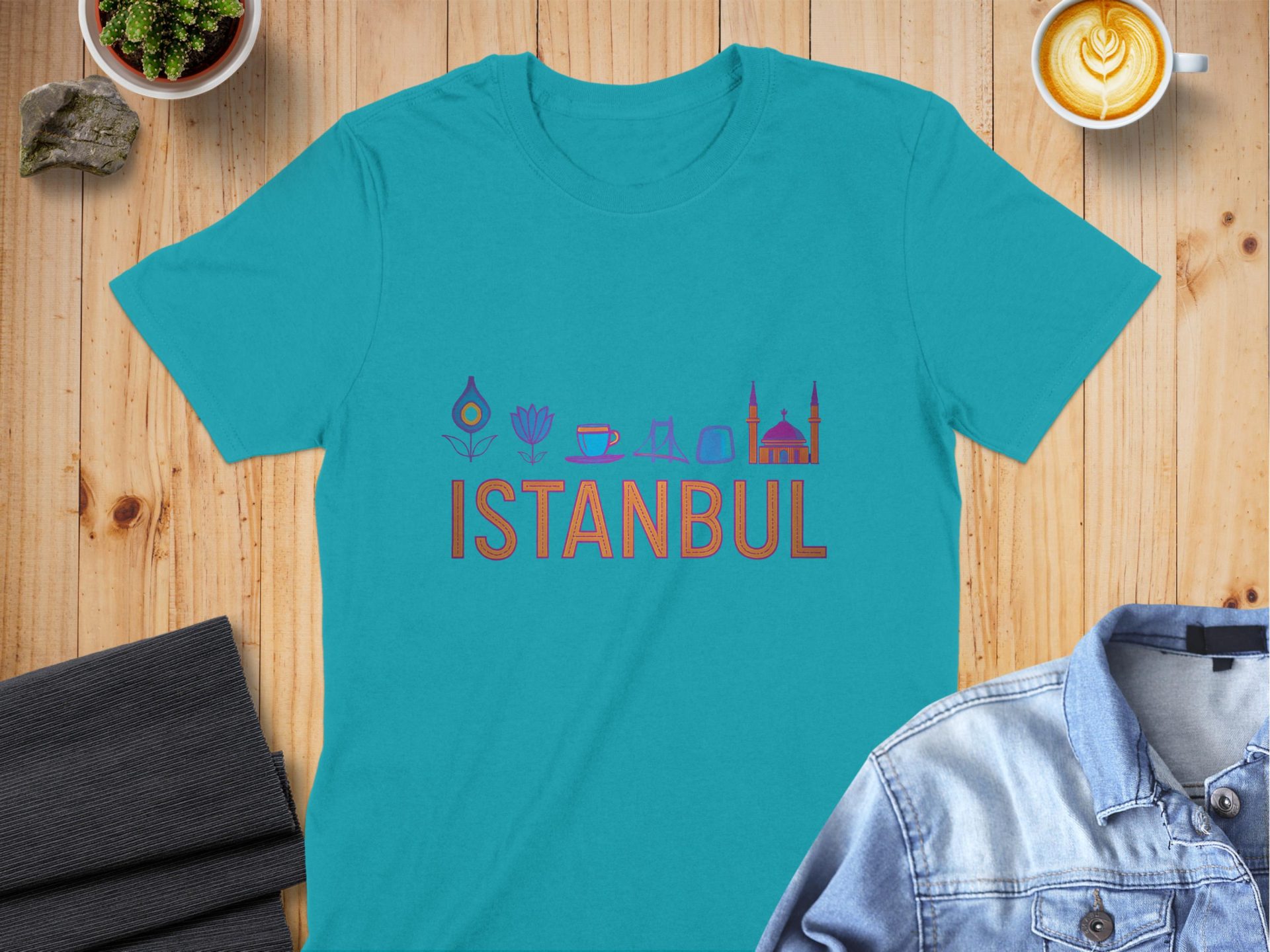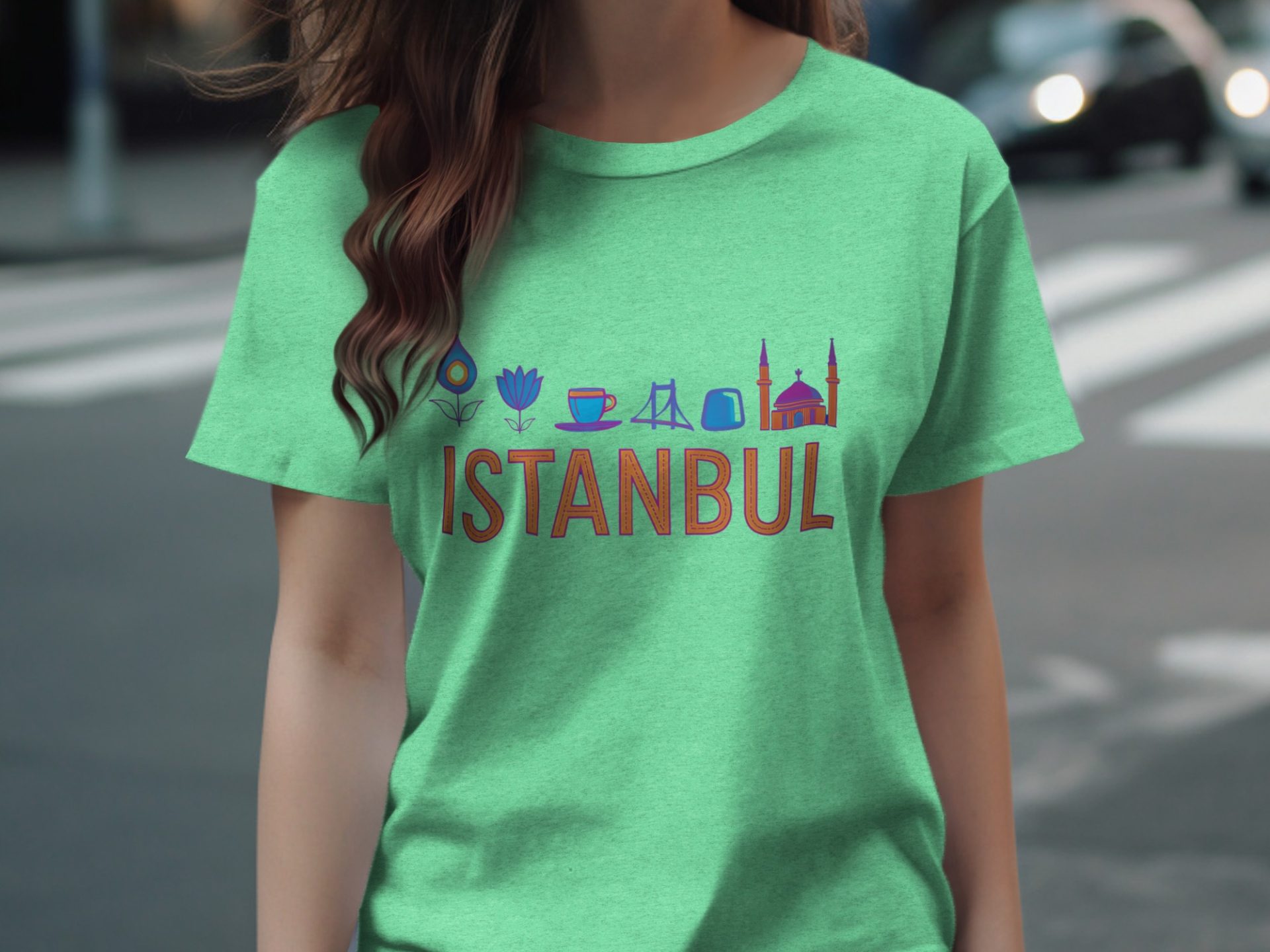 Express your love for Istanbul with this unique T-Shirt design! Showcasing iconic symbols the city offers culture enthusiasts a stylish way to represent.