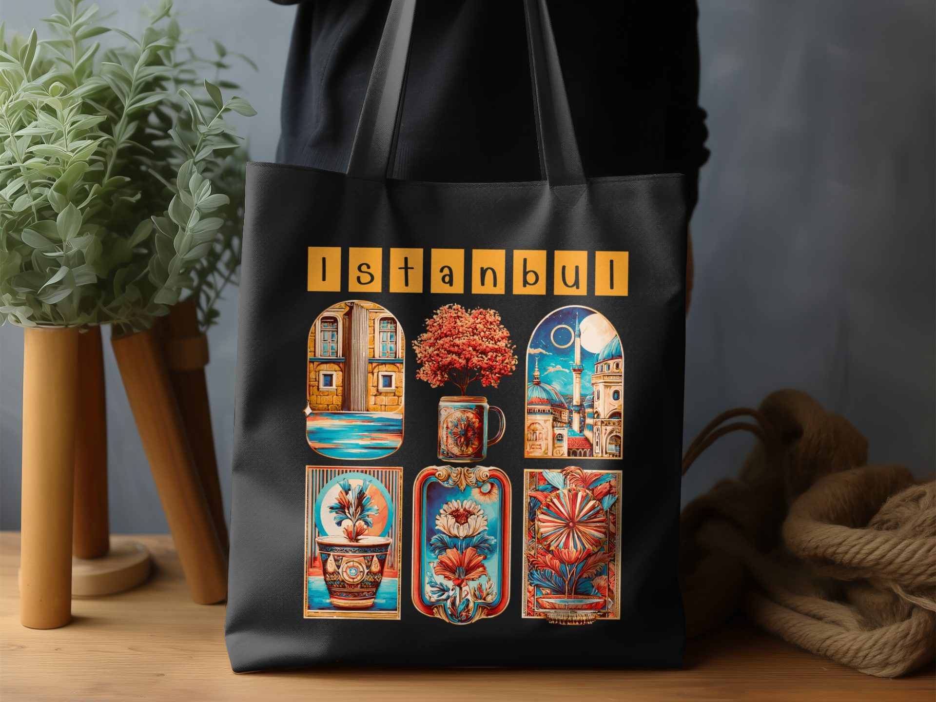 Explore the artistic allure of Istanbul with our uniquely designed tote bag! This artistic representation brings a touch of ornate beauty to your everyday style. Shop now to carry this visual masterpiece.