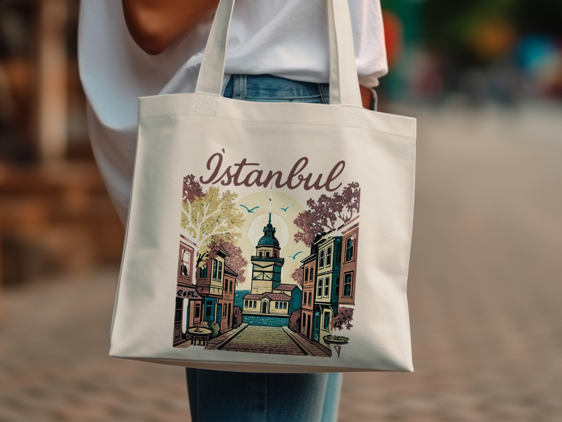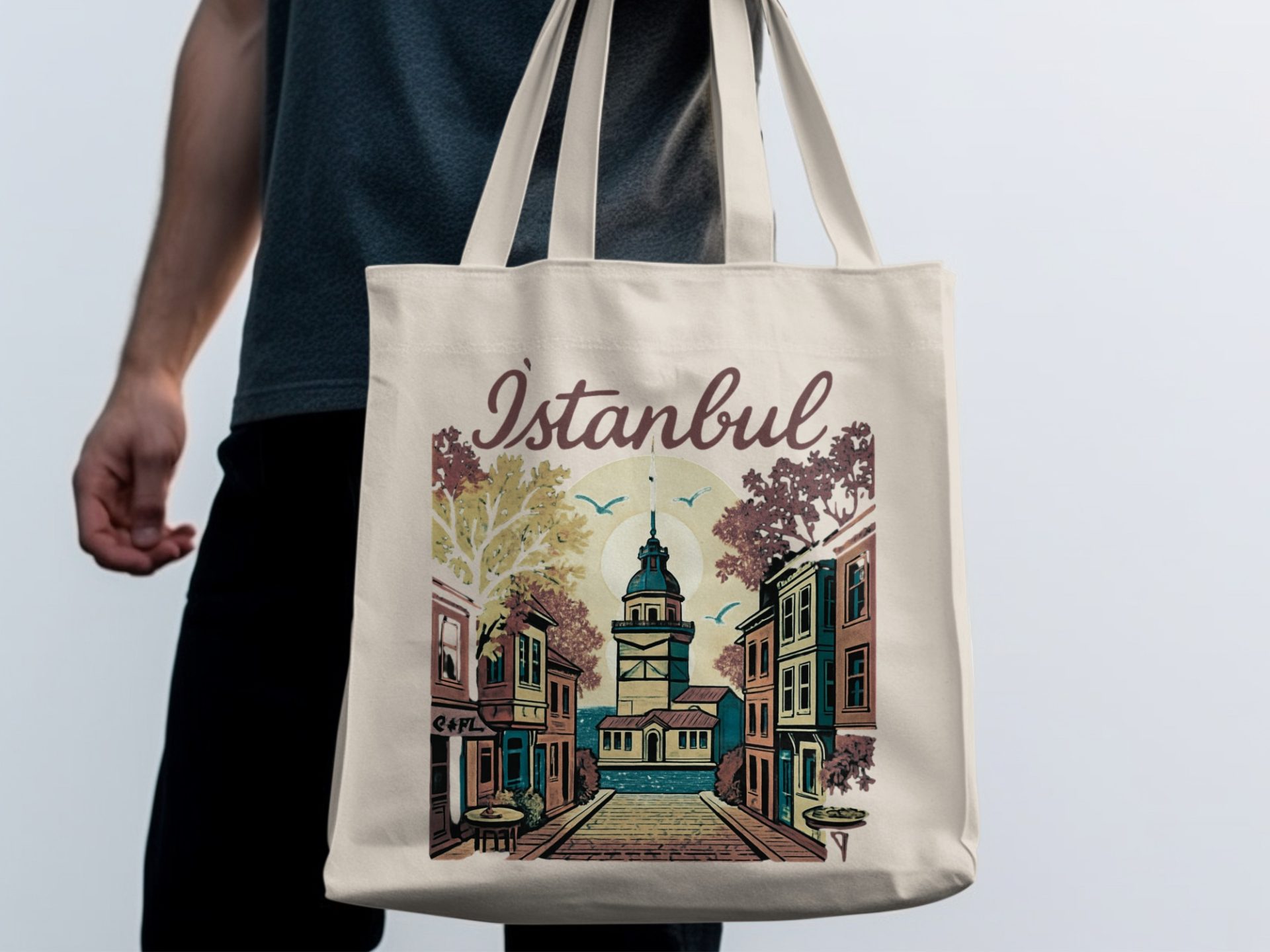 Istanbul Landmark Design Illustration Artistic Style Tote Bags