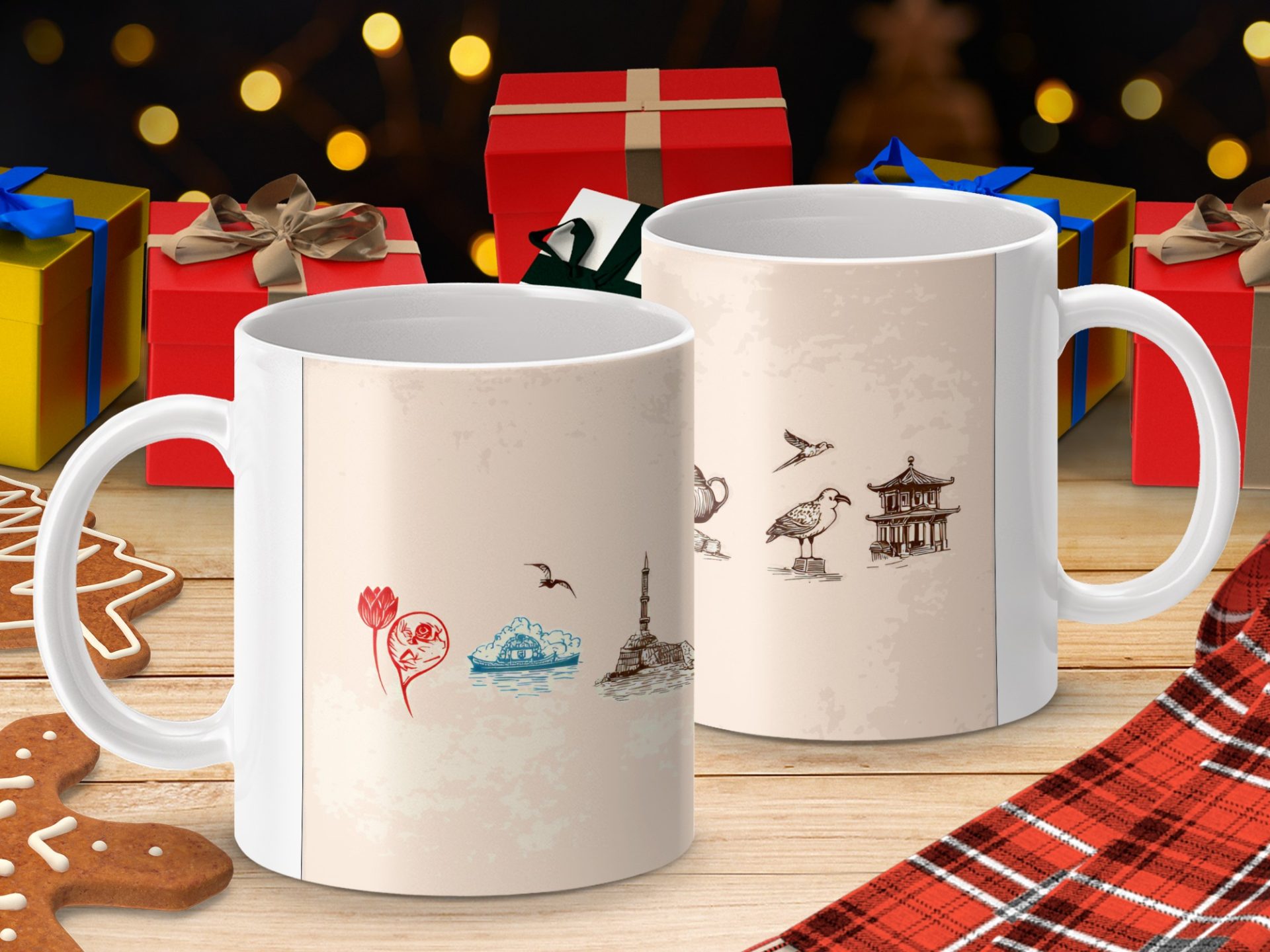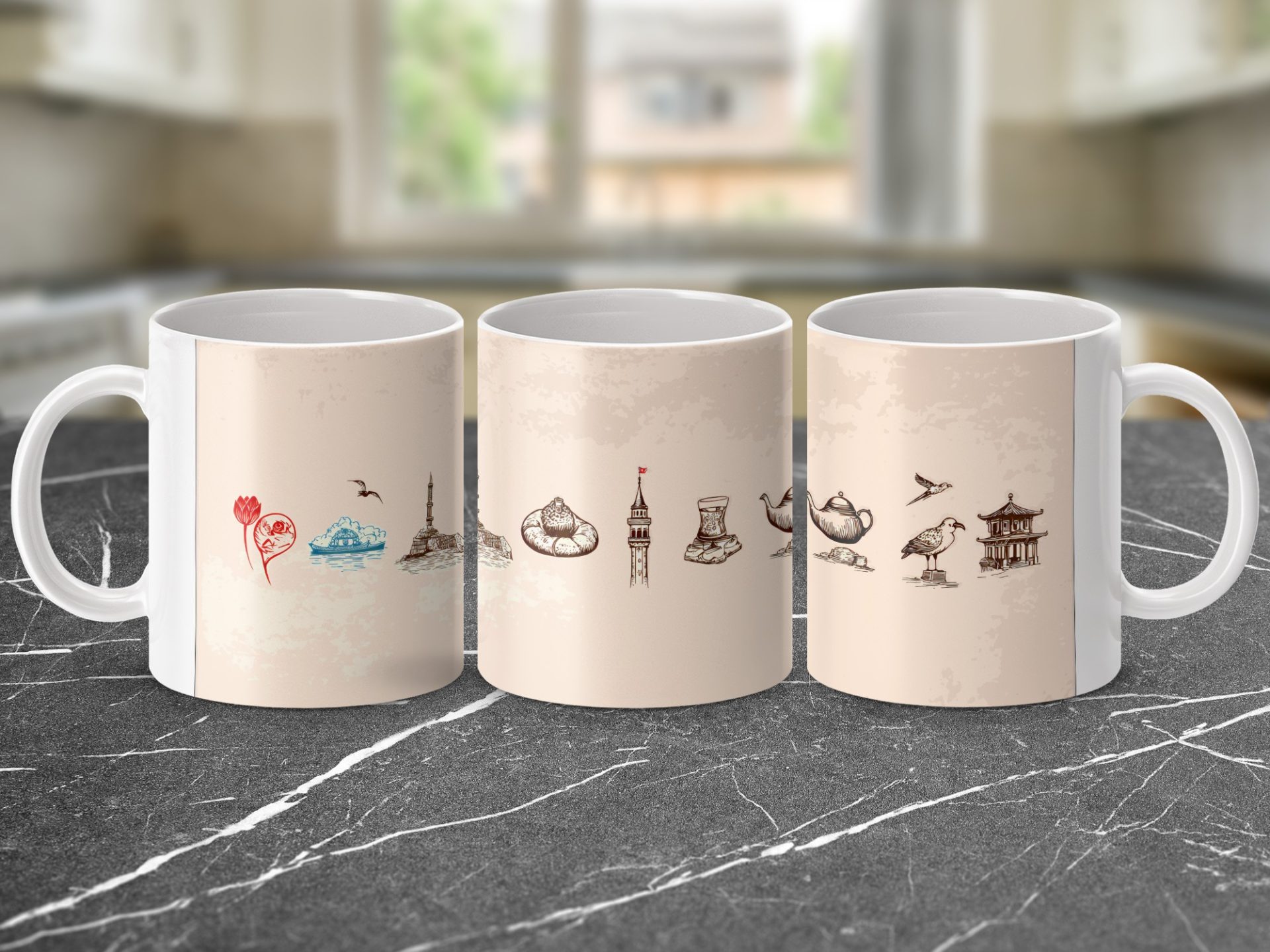 Istanbul Landmarks Illustration Design Unique Gift Mugs