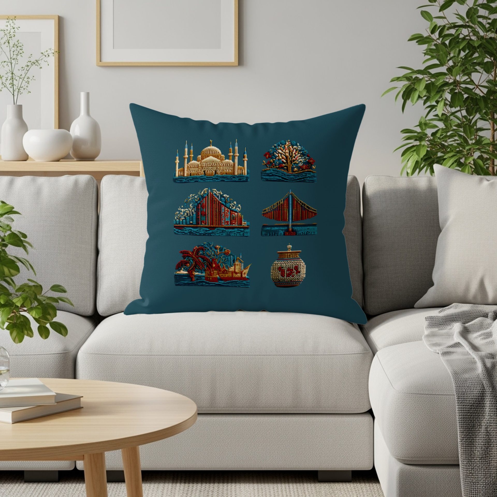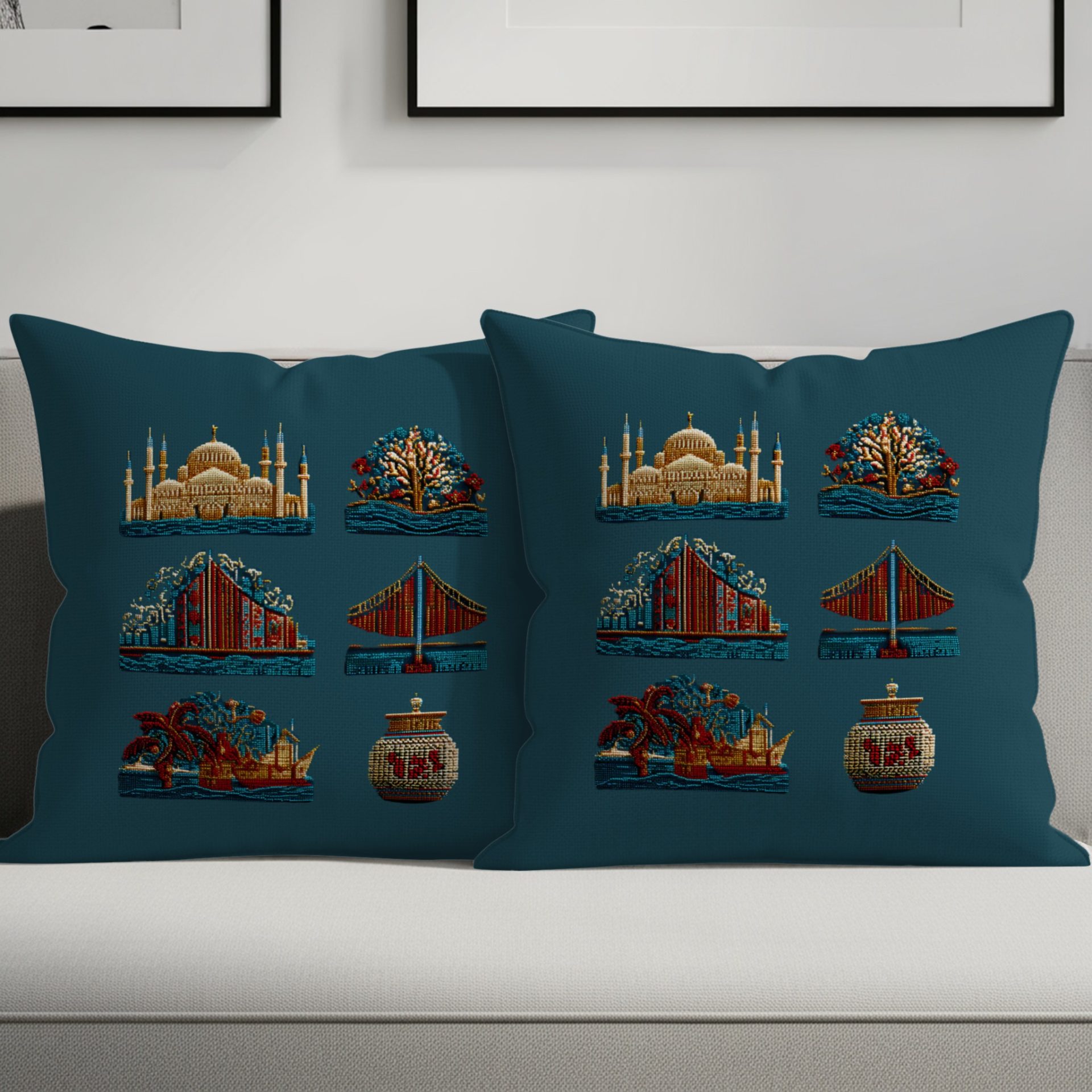 Adorn your space with our decorative pillows showcasing vintage Istanbul landmarks. Perfect for adding a touch of cultural charm and artistic flair to your home decor collection.
