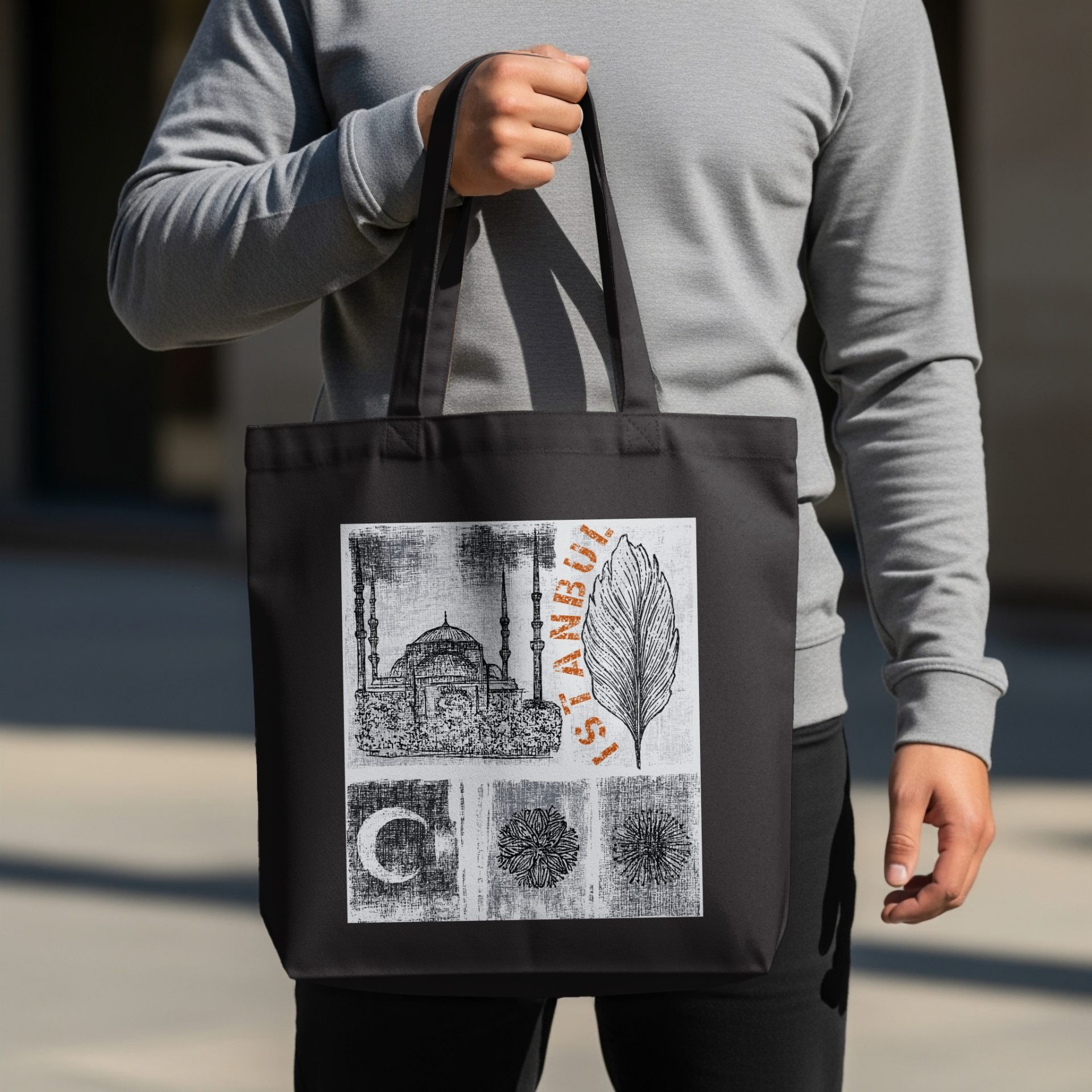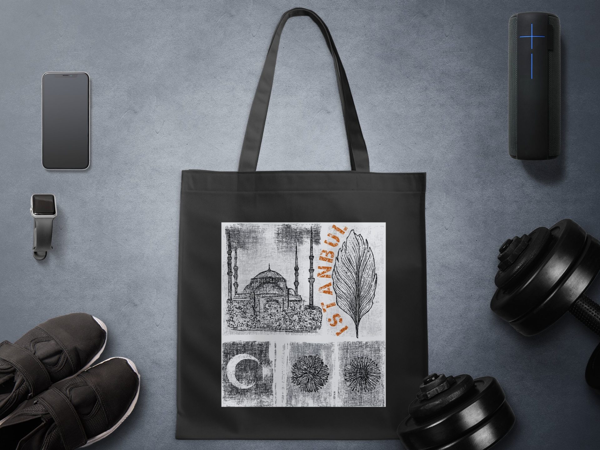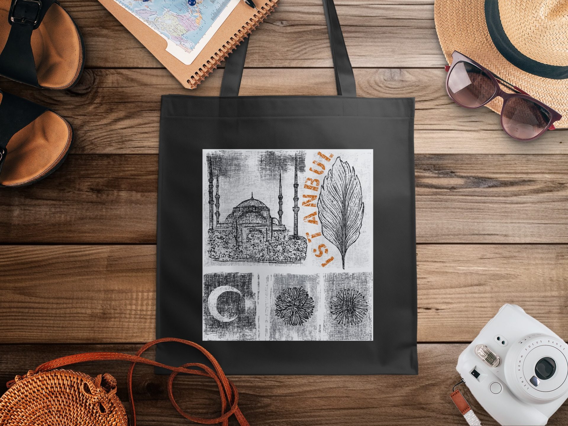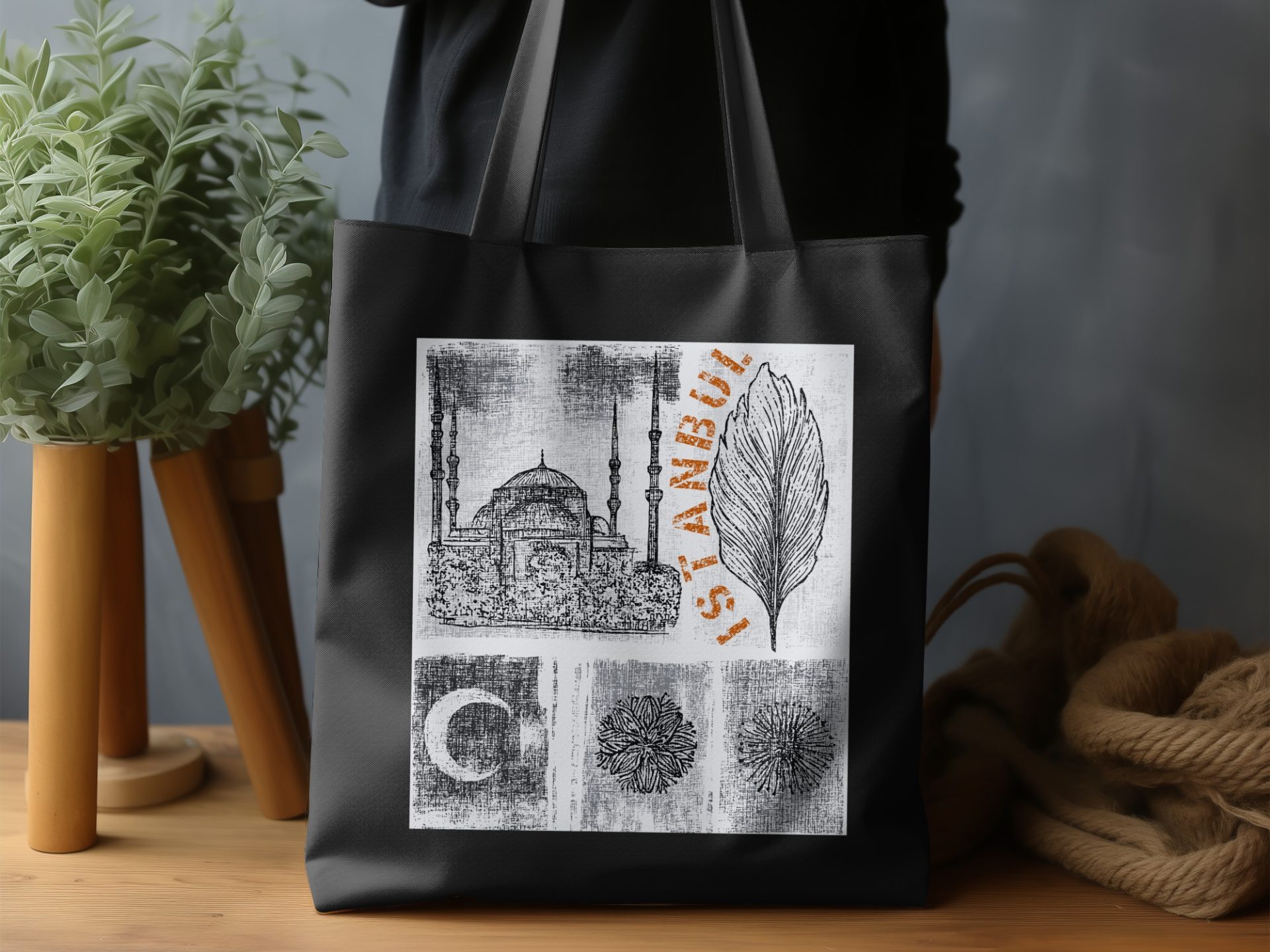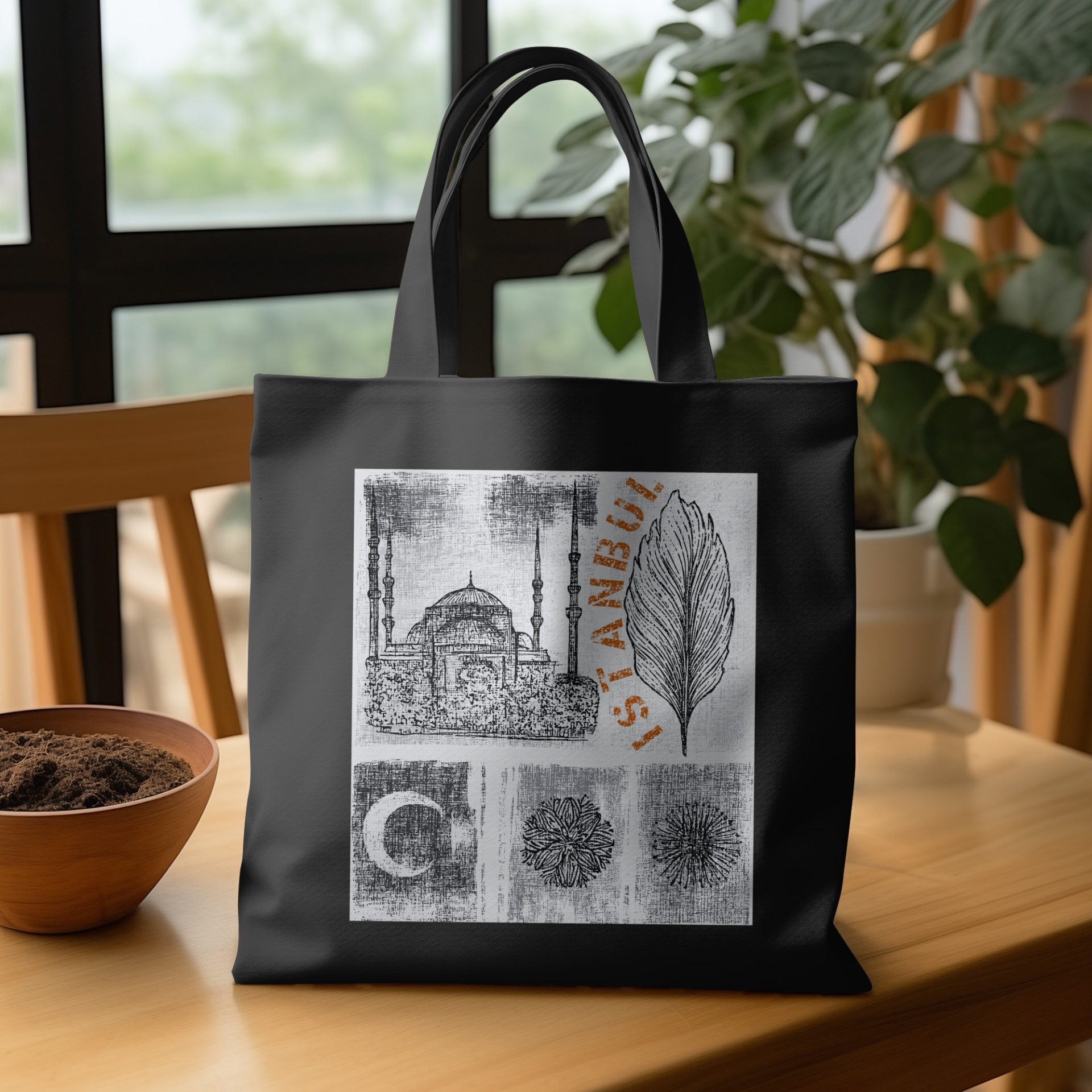 Istanbul Mosque Leaf and Flowers Graphic Design Tote Bags