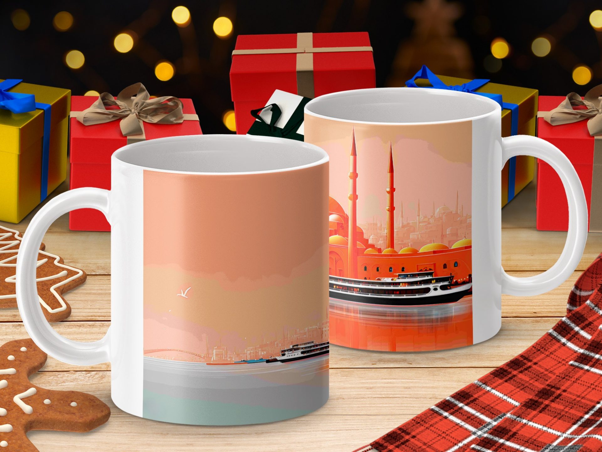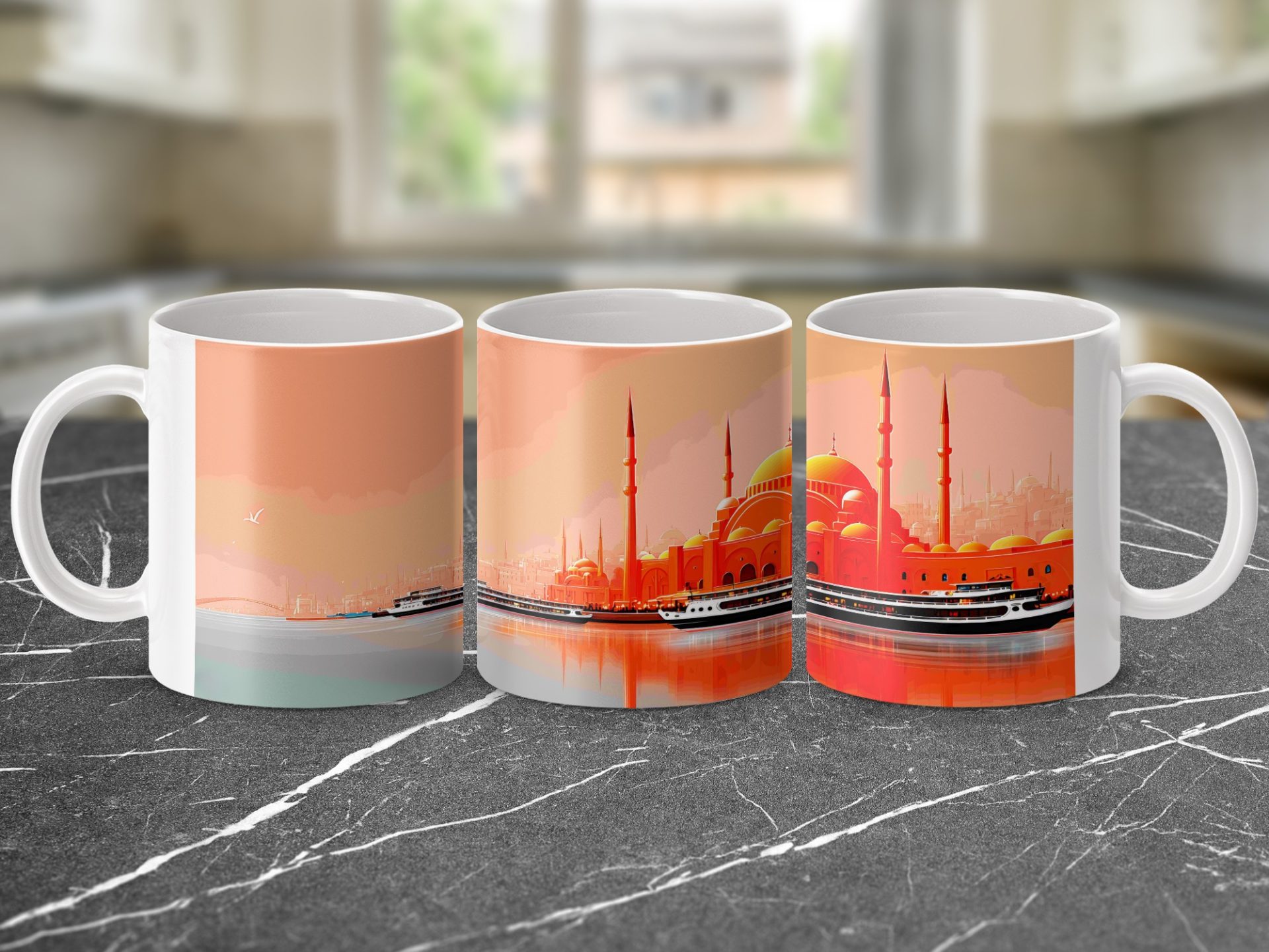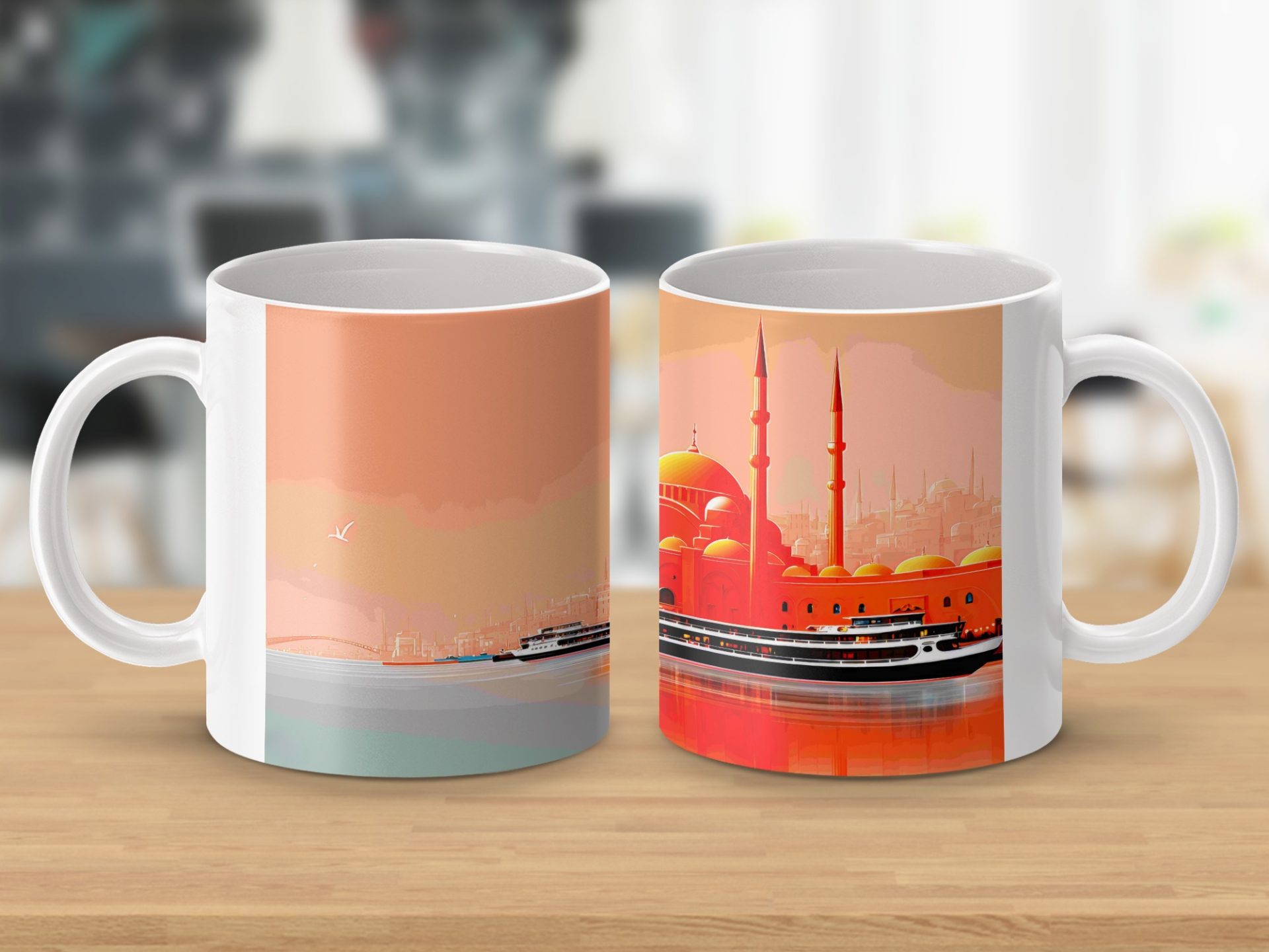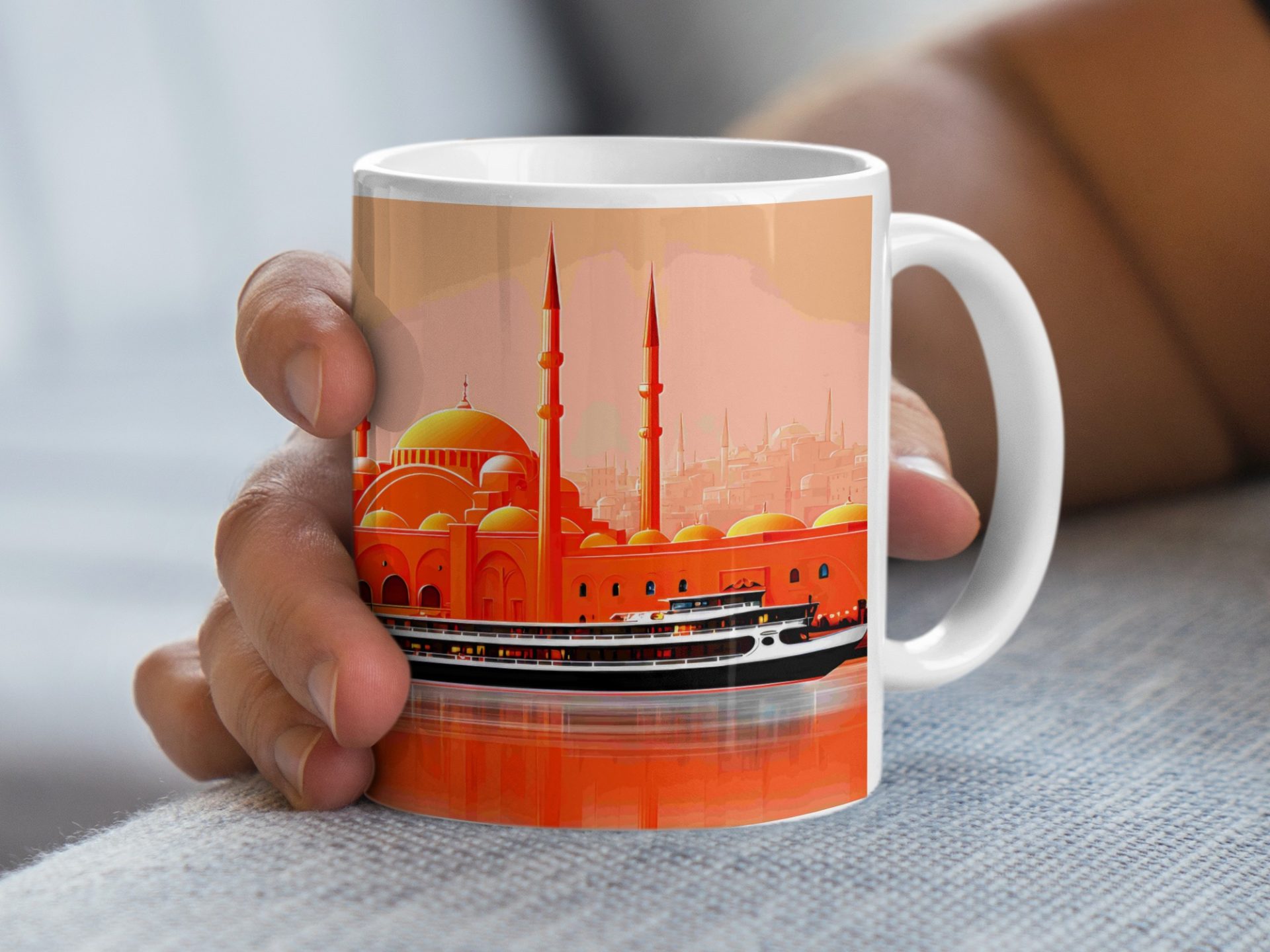 Indulge in the beauty Istanbul with this unique mug. The mug features a stunning mosque scene over water in painting style. It makes a perfect gift for architecture lovers.