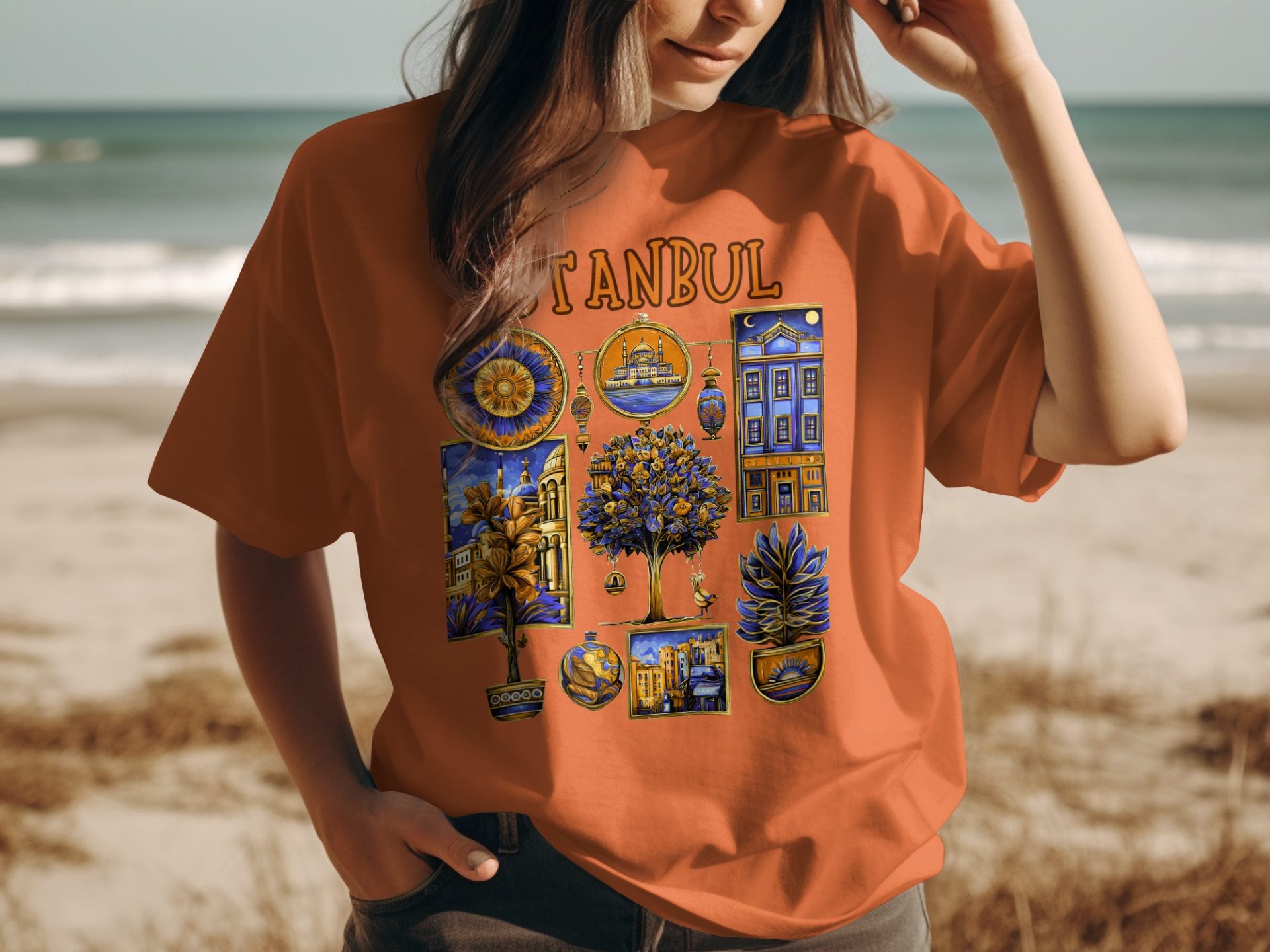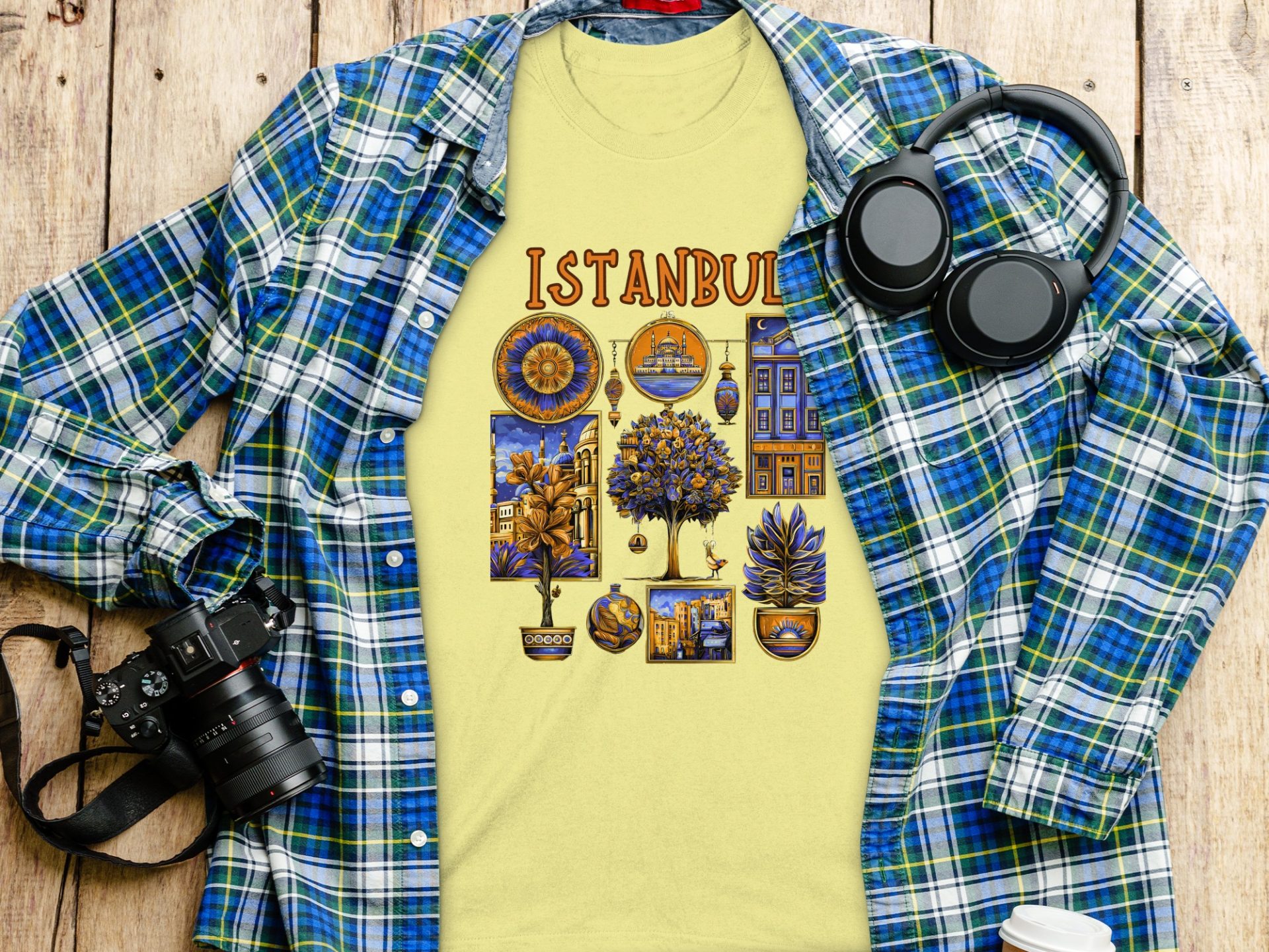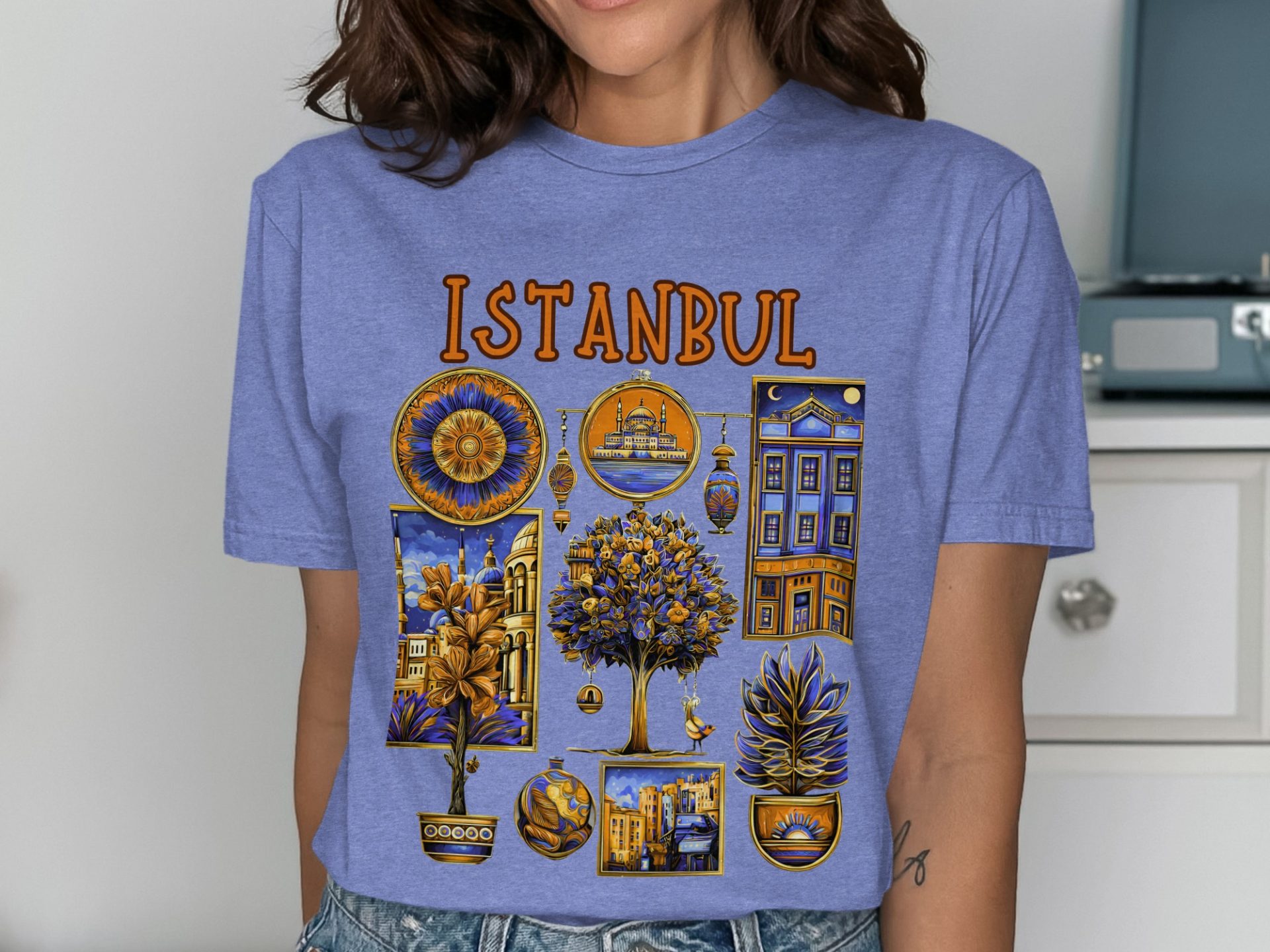 Celebrate Istanbul with this unique T-Shirt design featuring iconic scenes and symbols. Perfect for travel enthusiasts who cherish cultural aesthetics. A must have for Istanbul lovers!