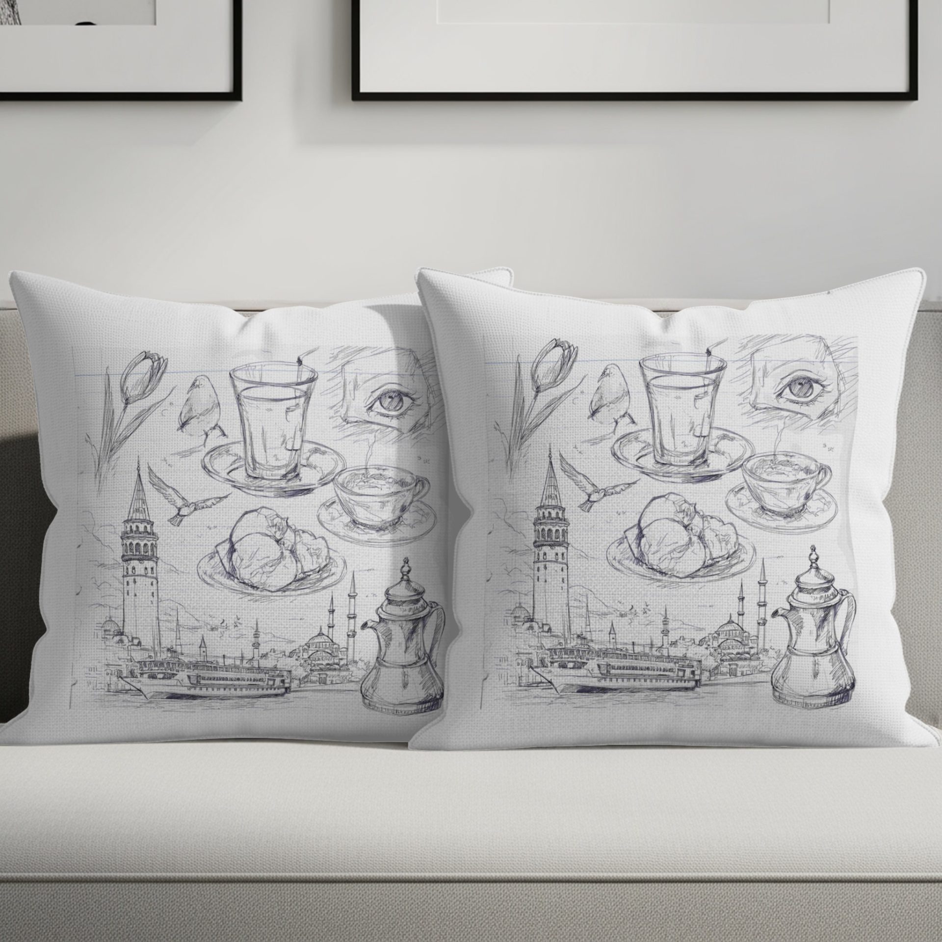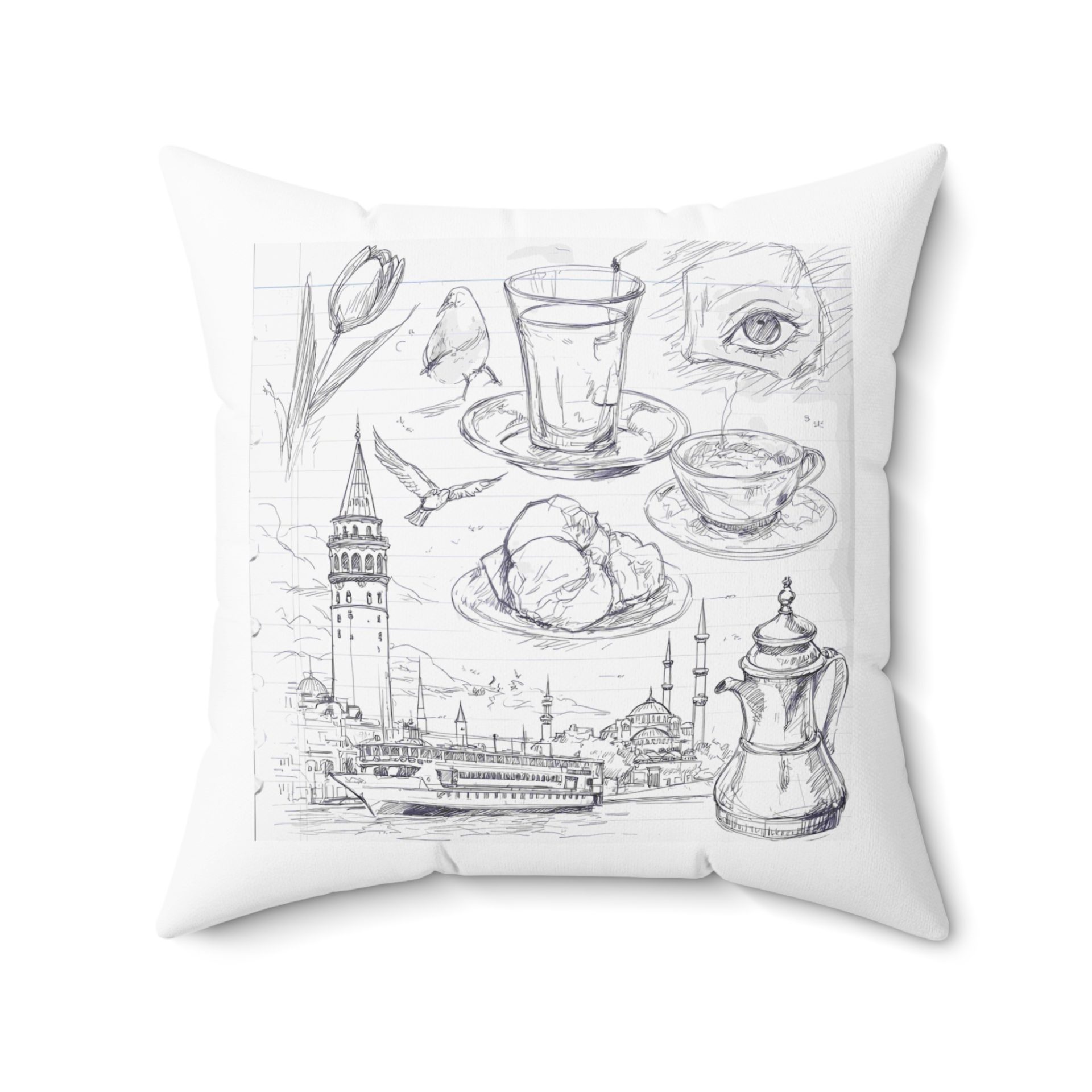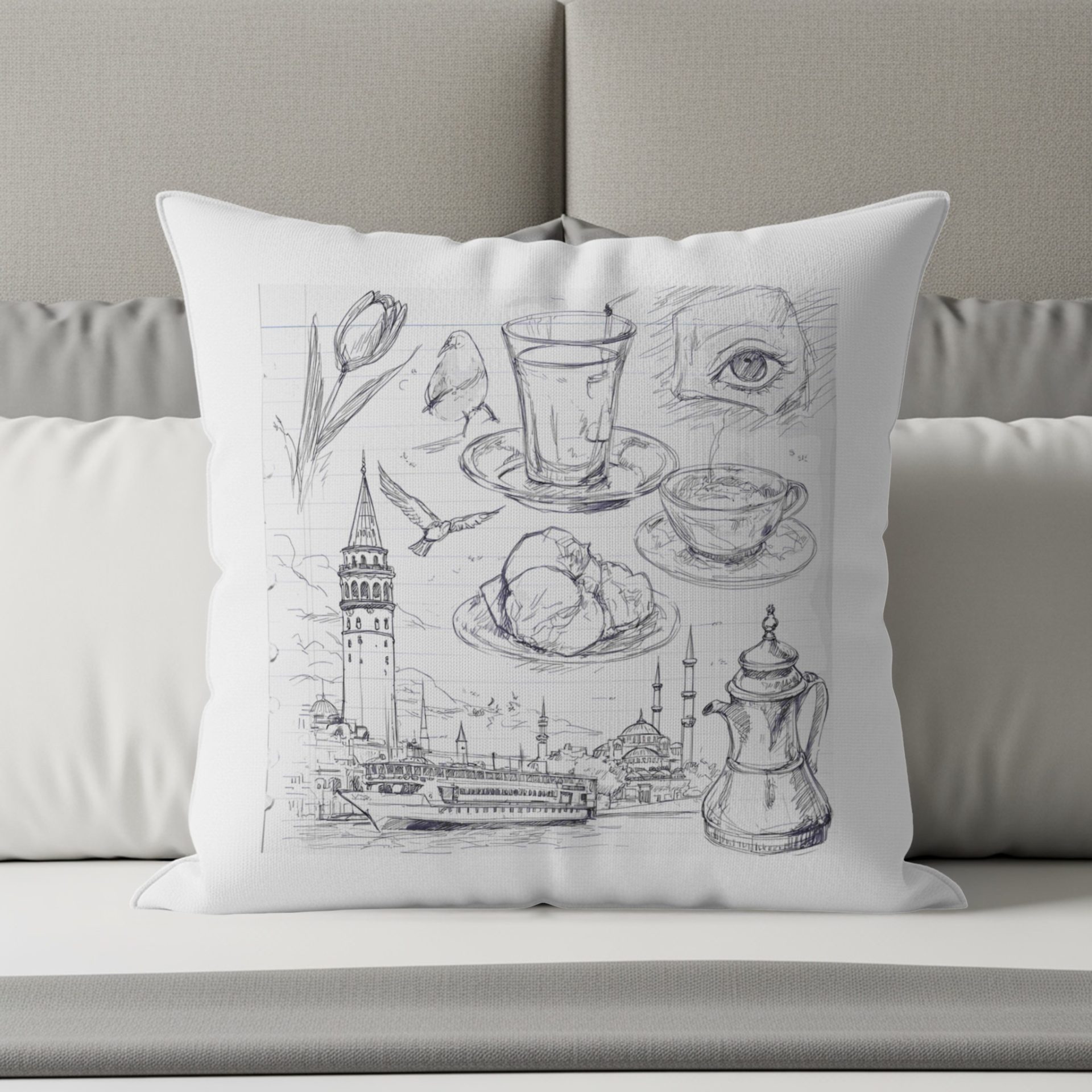 Istanbul Sketch Cityscape Illustration Design Pillows & Pillow Cases