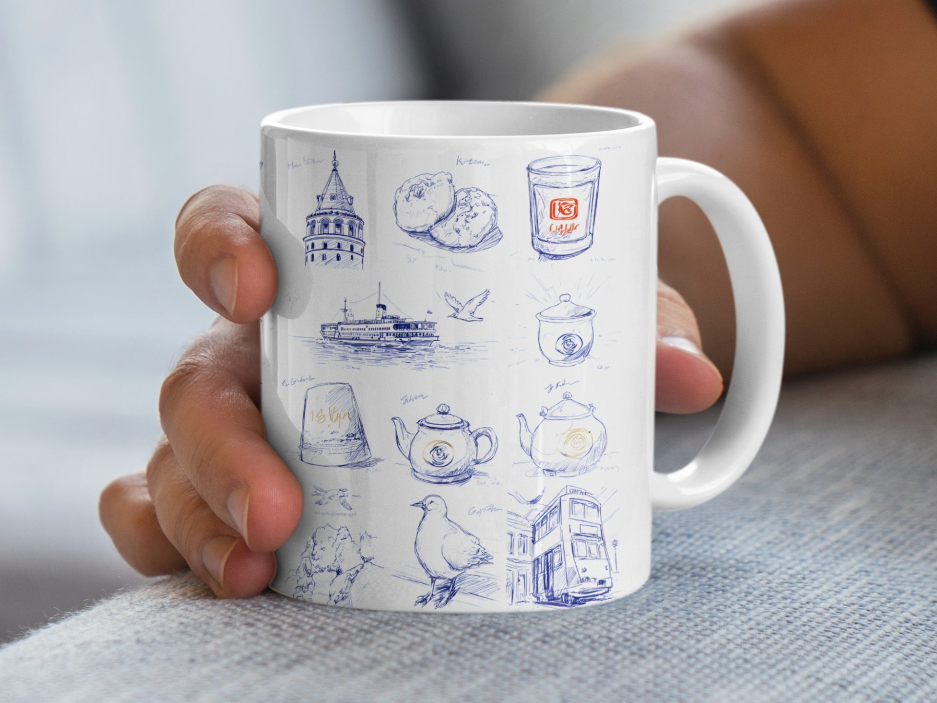 Istanbul Sketches Tulip Teapot Seagull Bus Drawn Mugs