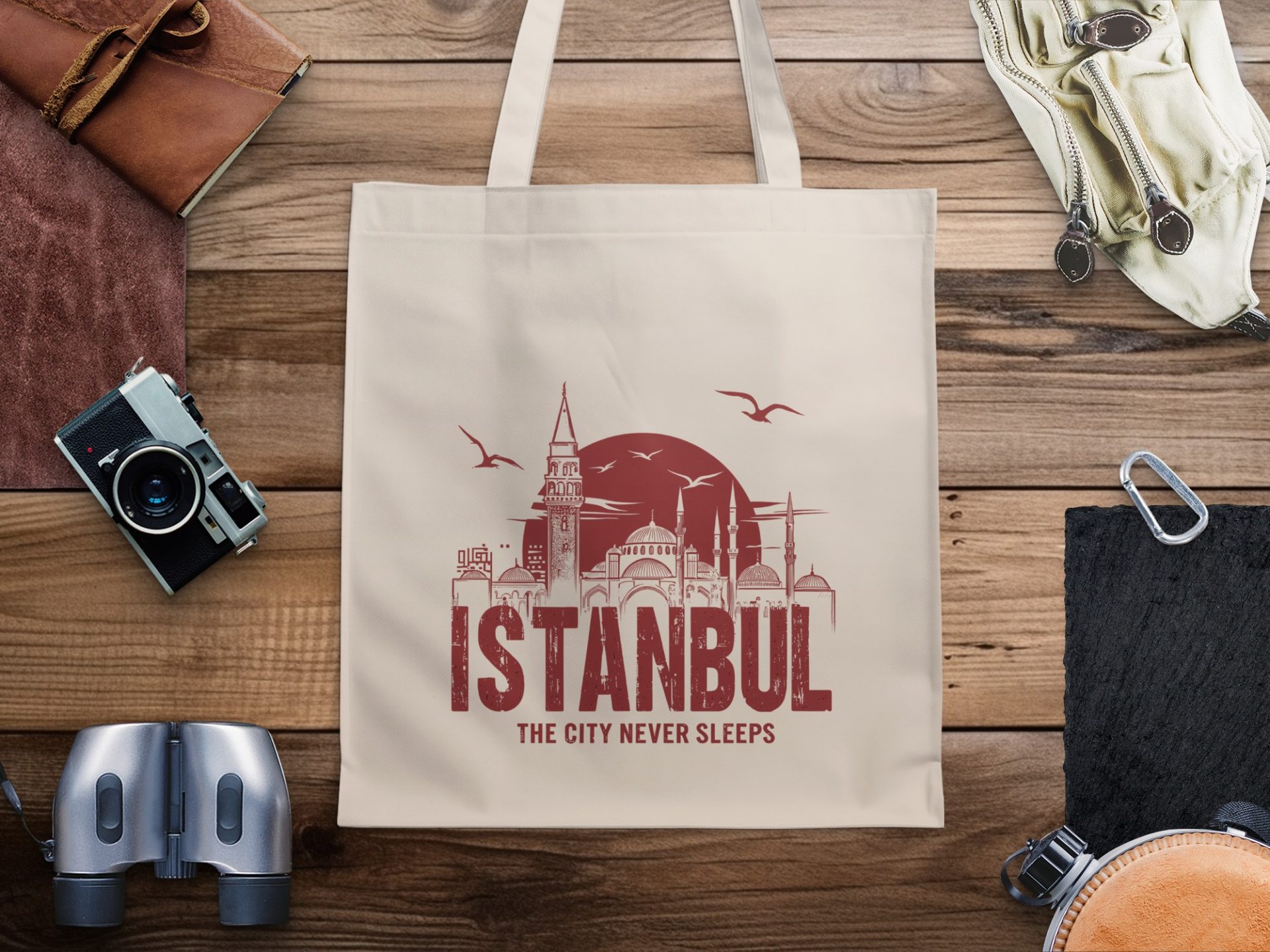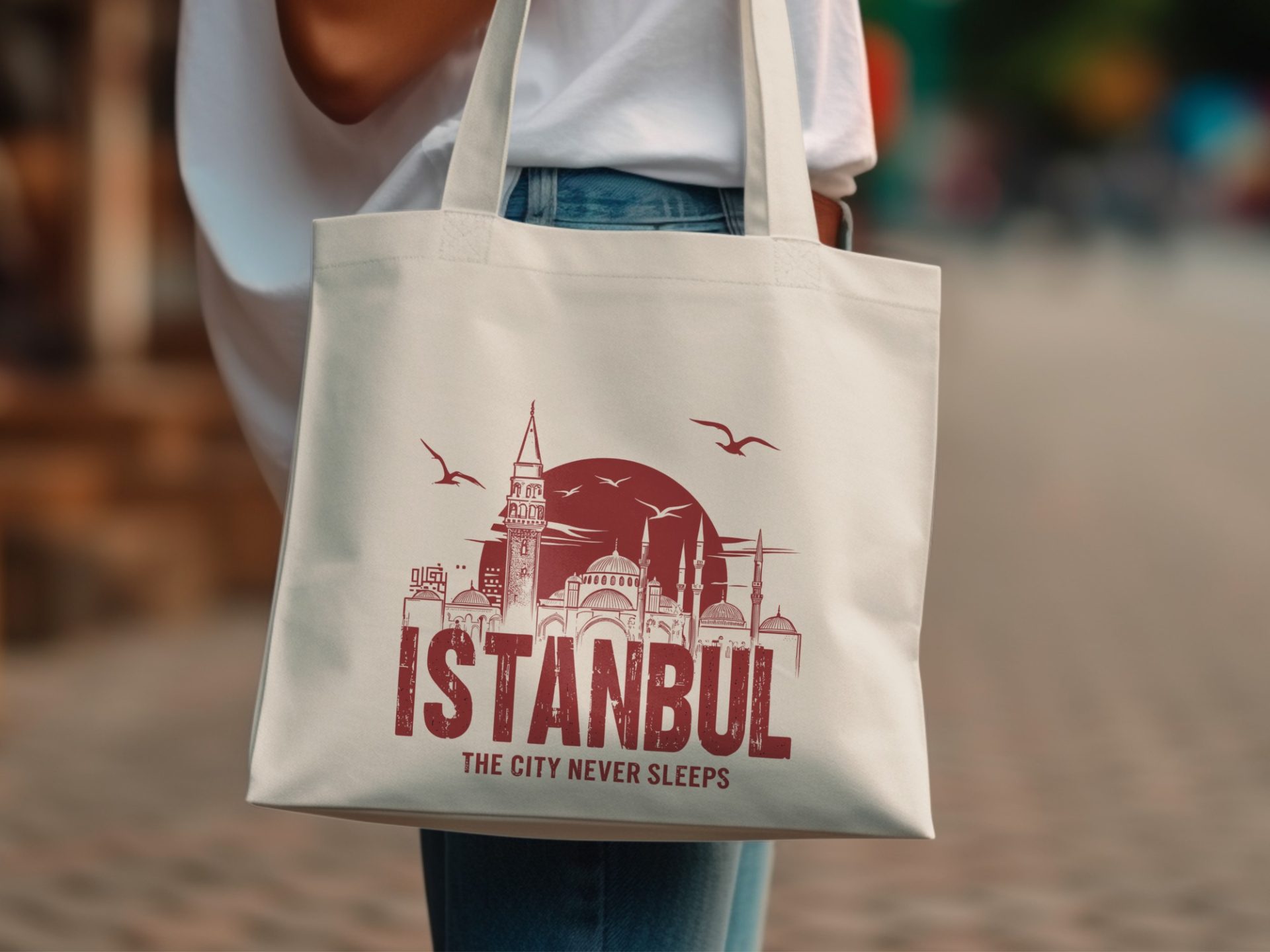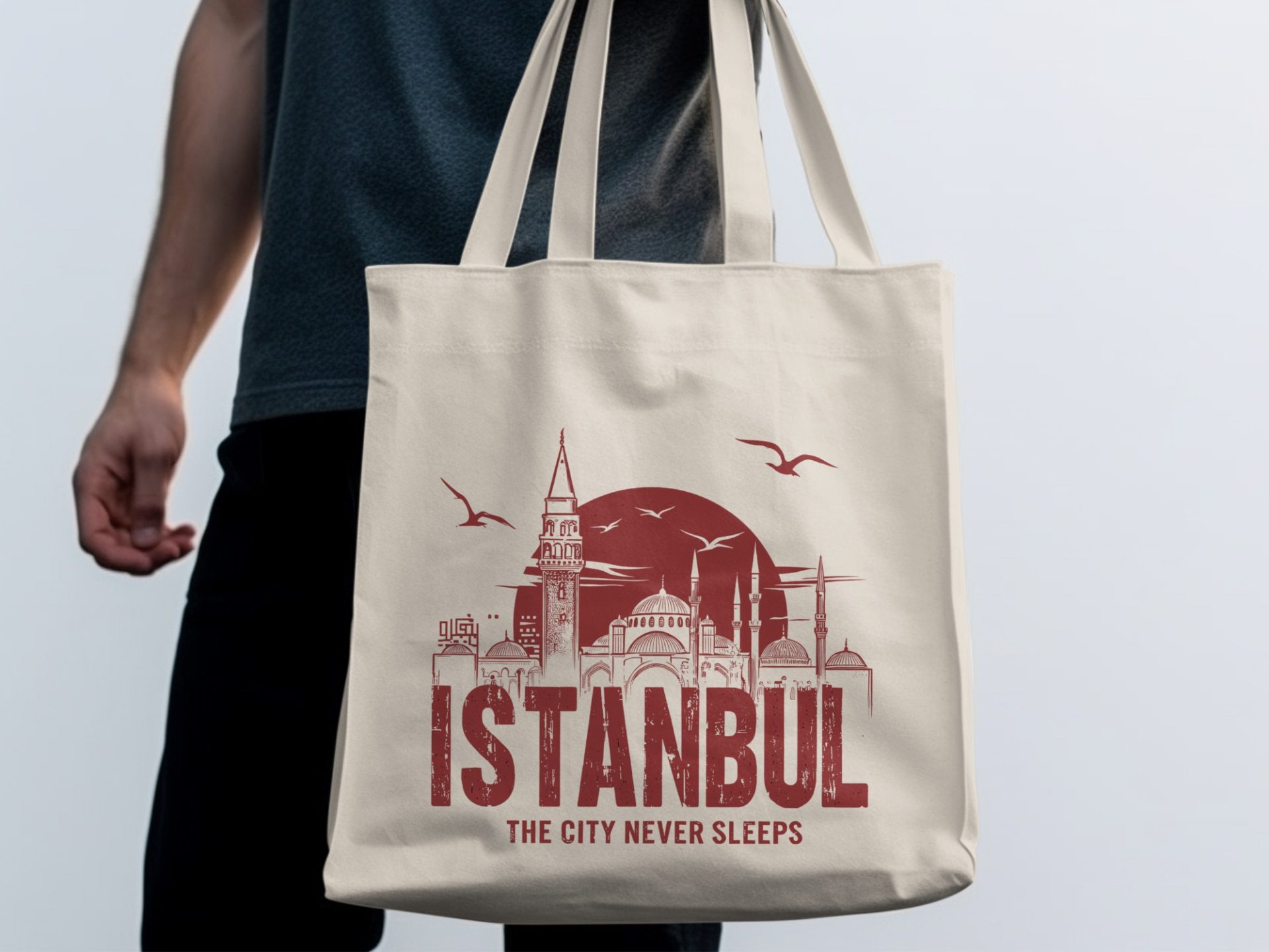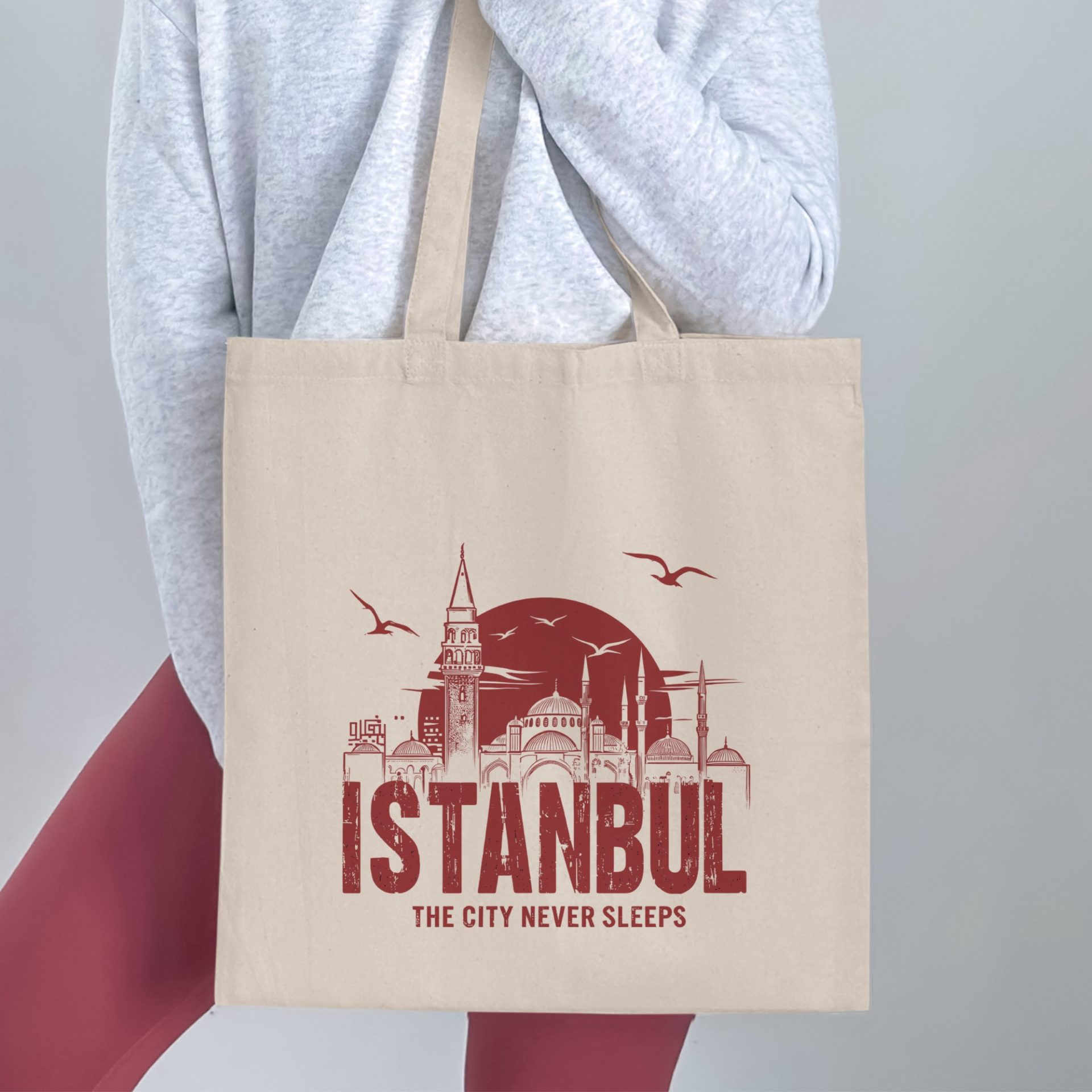 Explore Istanbul the City Never Sleeps with this unique illustrated Tote Bag. Showcase your love for Istanbul's iconic skyline and bustling culture every day!