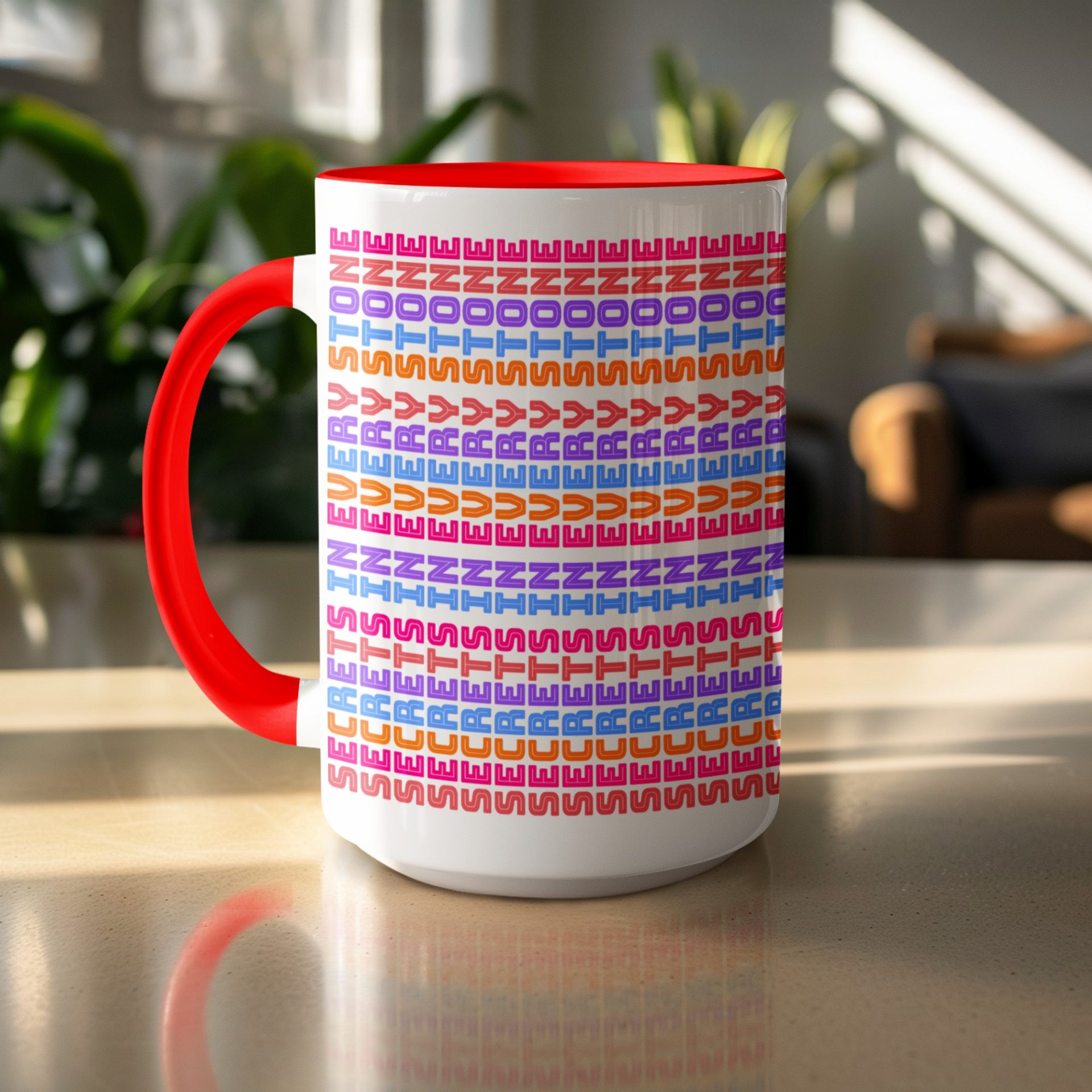 Elevate your beverage experience with this eye-catching mug! Features an array of assorted letters and abstract symbols arranged in a colorful and captivating pattern design.