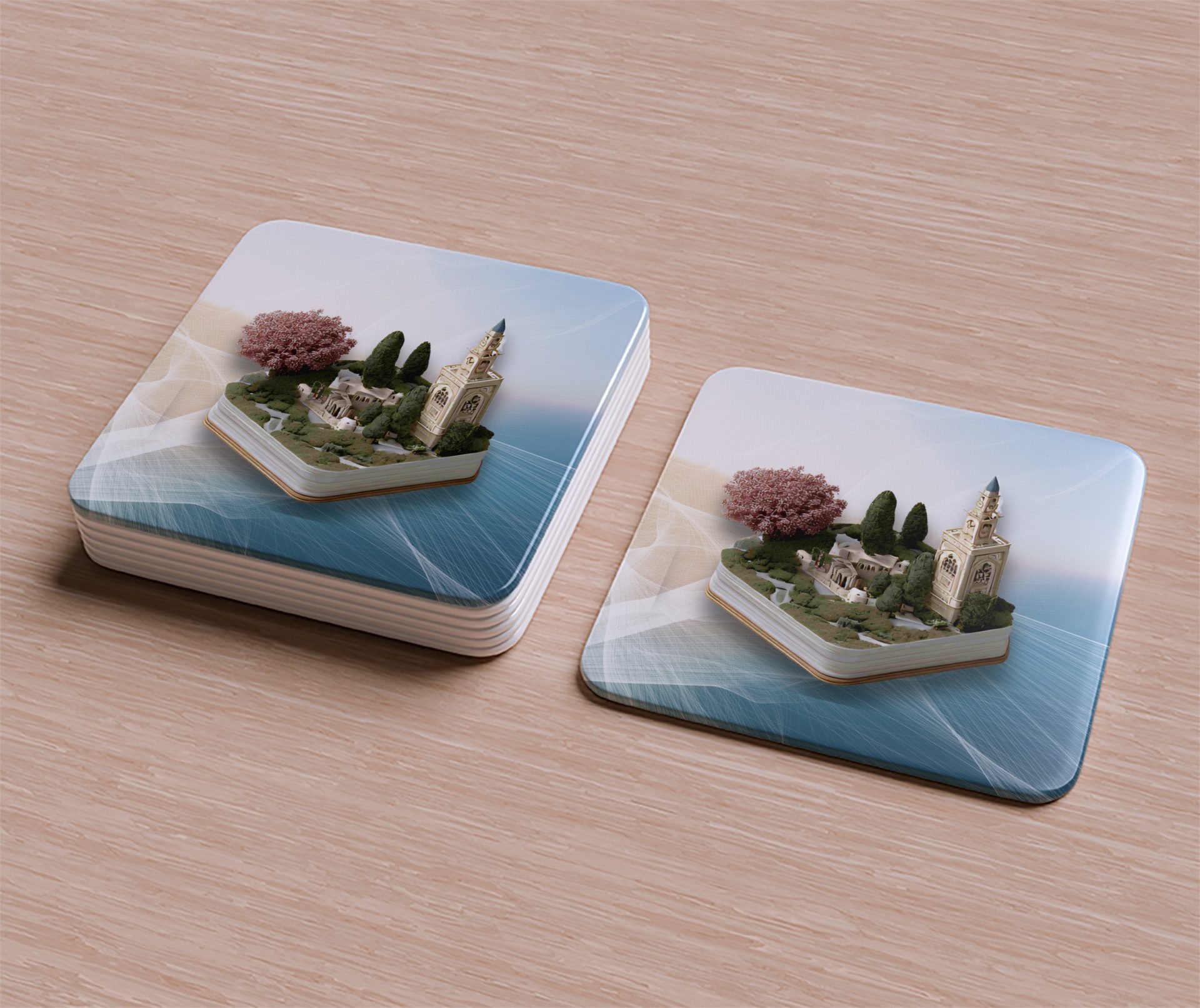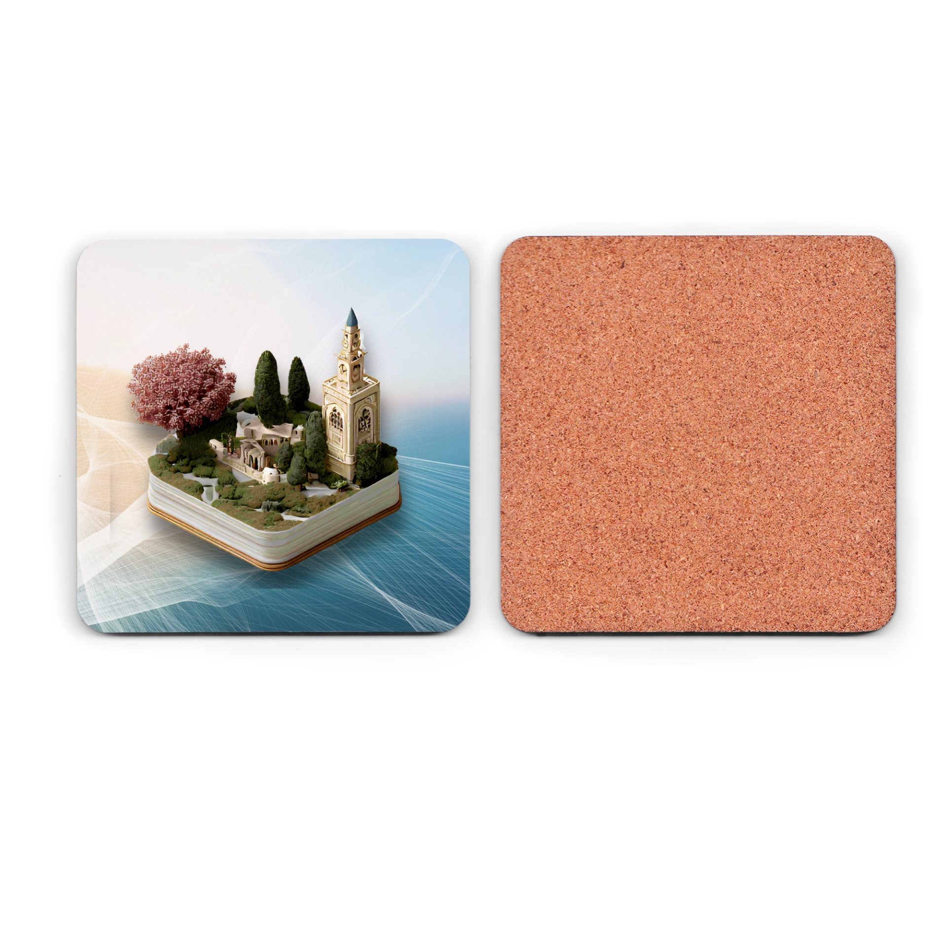Elevate space with this unique miniature city landscape artwork on book. Protect surfaces with art. Perfect gift home decor. Explore this picturesque scene showcased on functional Coasters.