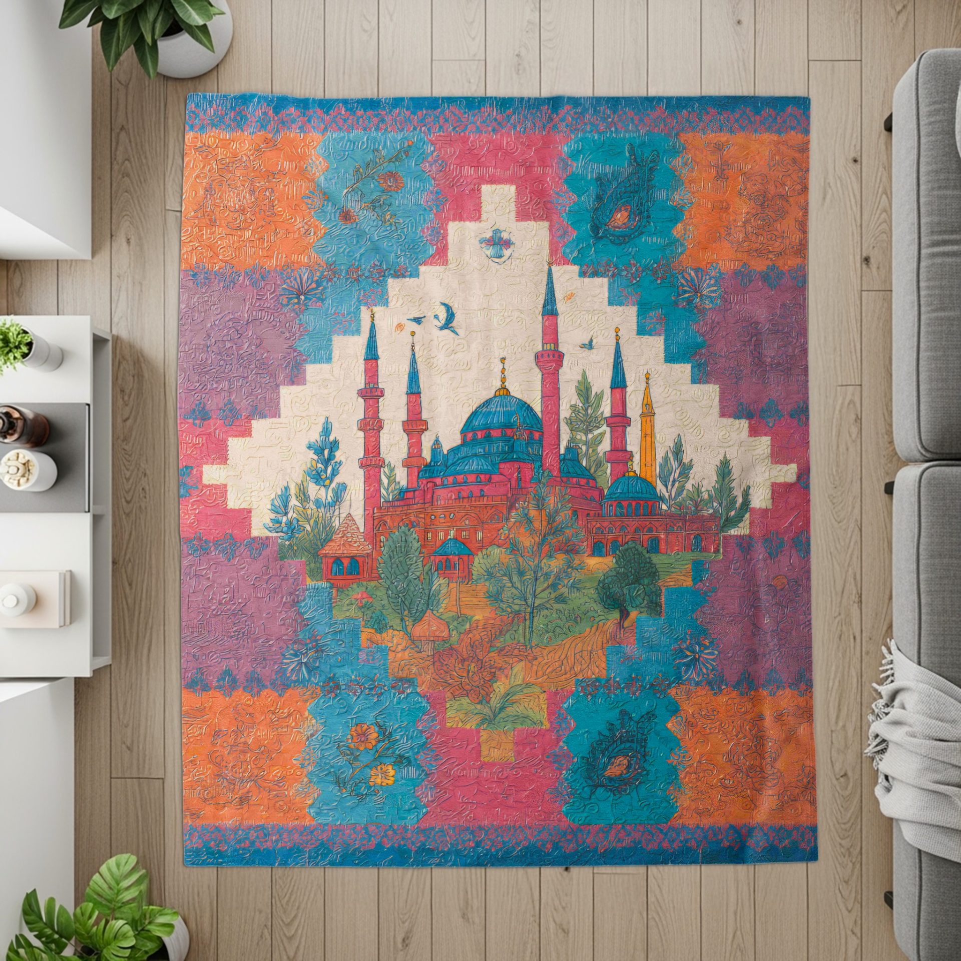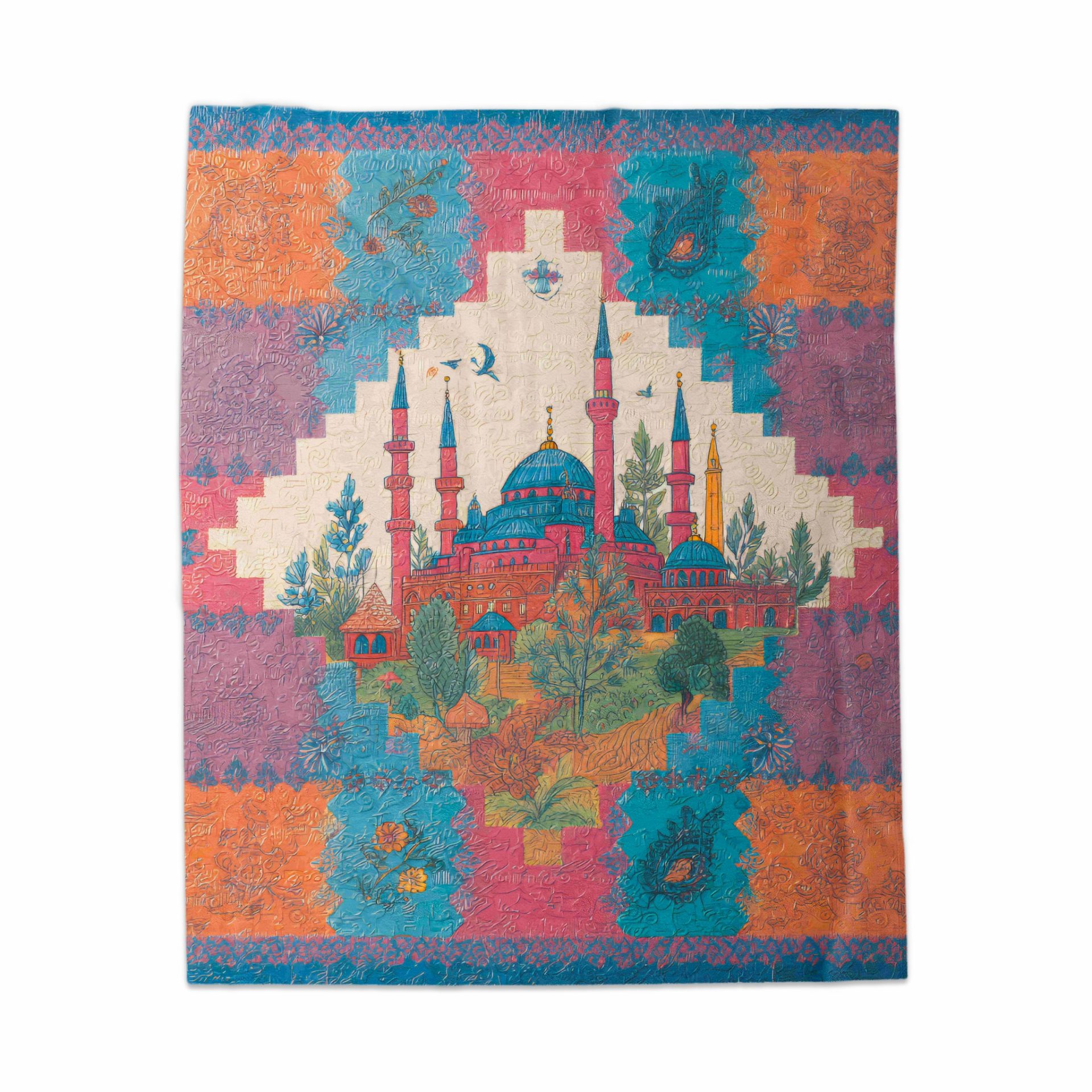 Discover elegant Mosque and Nature Abstract Art patterned blankets. A stunning addition to any home decor. Shop now and elevate your space with our unique Blankets.