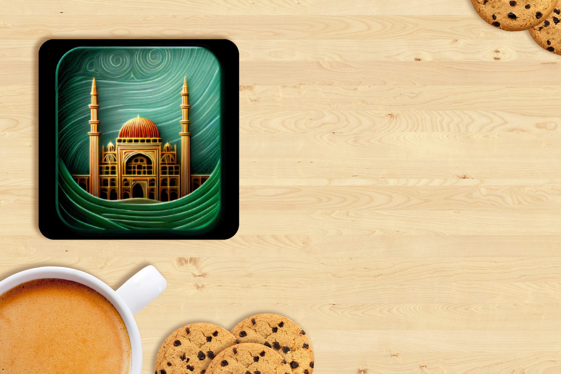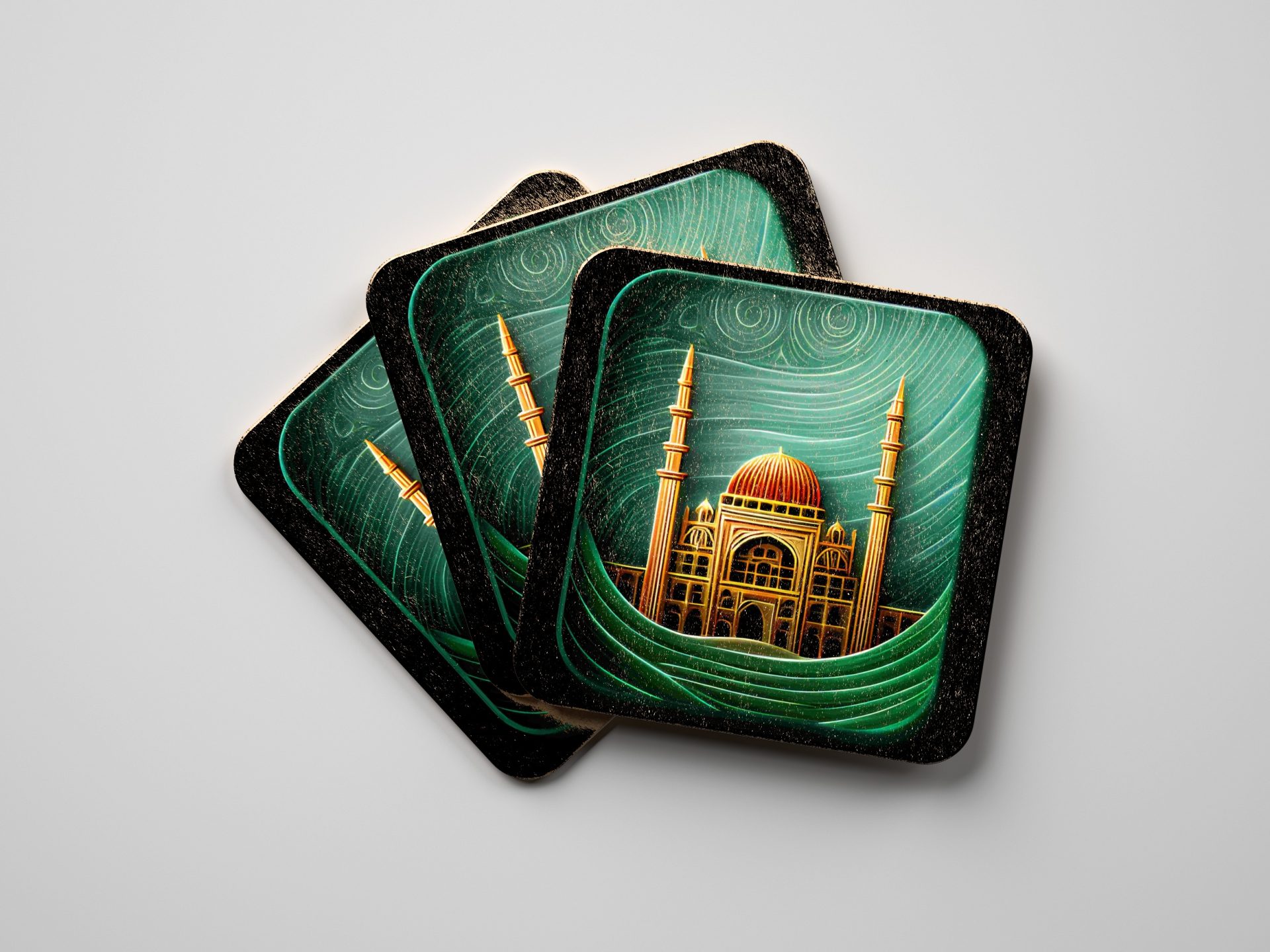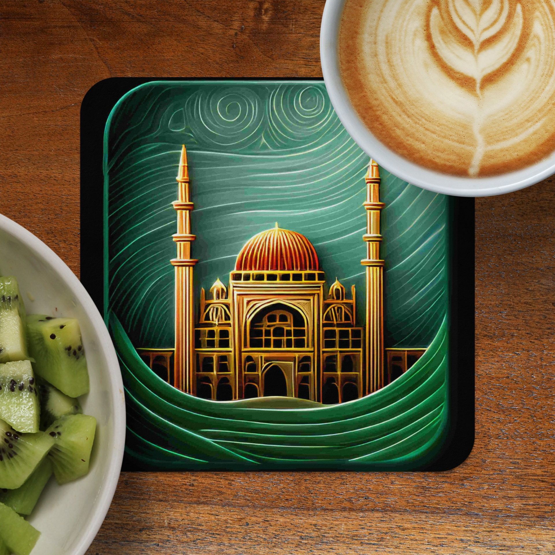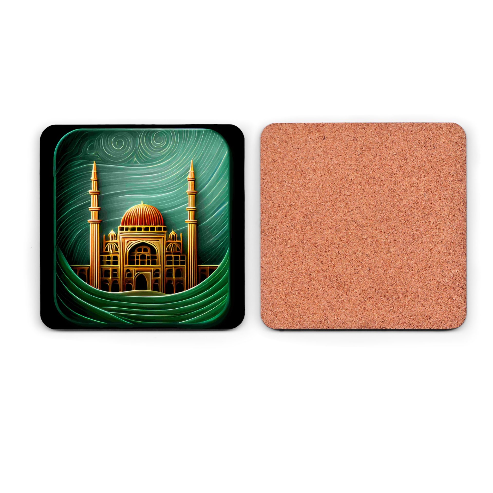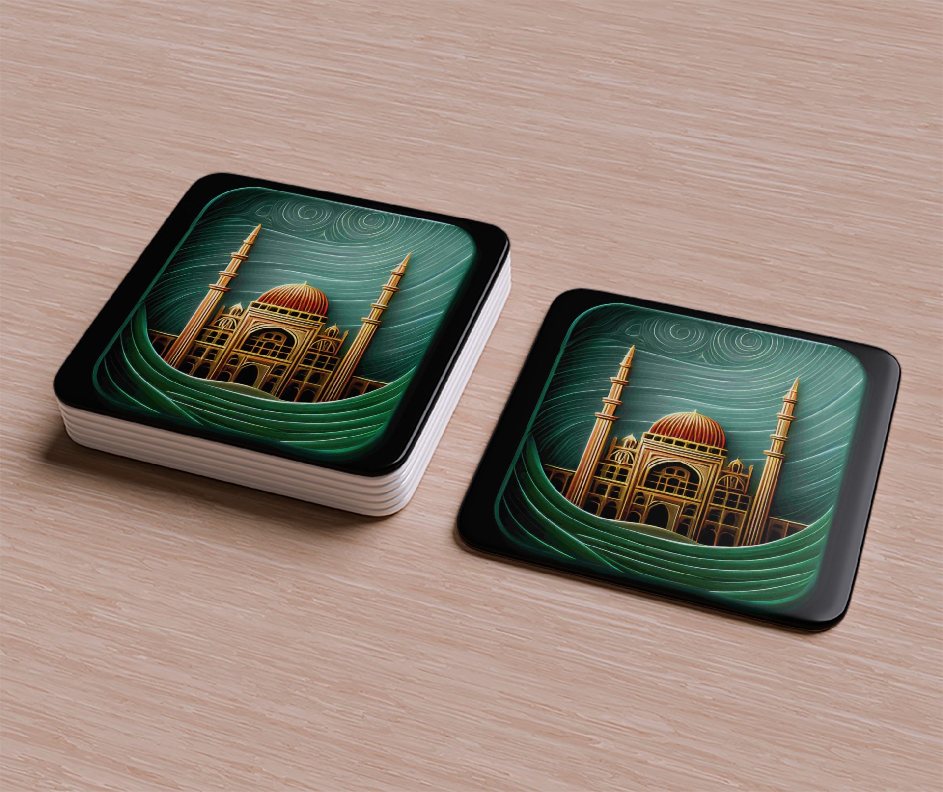 Discover our eye-catching Coasters showcasing a mosque art gold design with an illustration style. They infuse Islamic architecture and art with everyday functionality. Shop now!