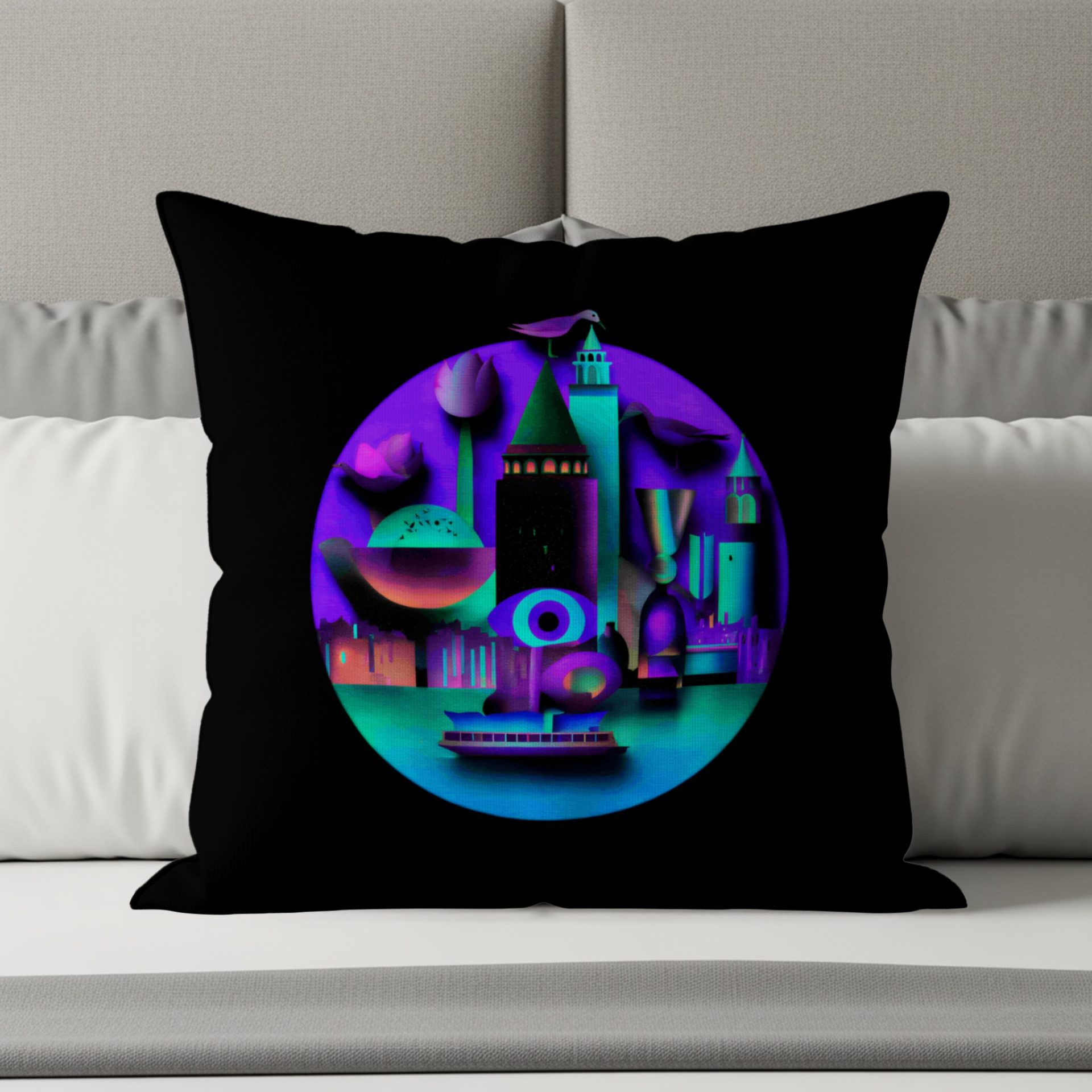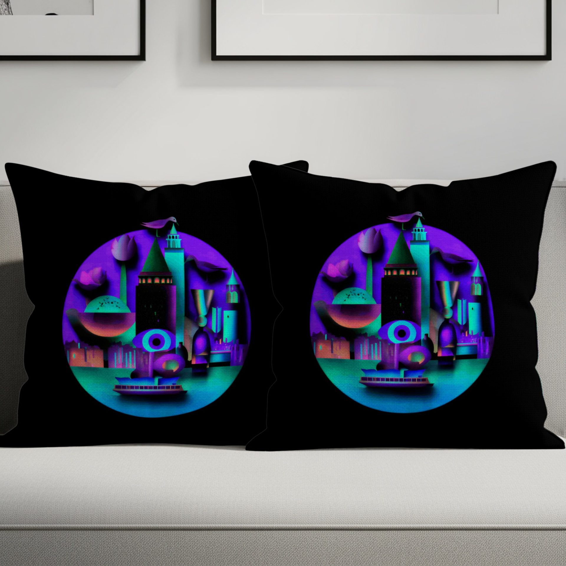 Night City Skyline Architectural Design Artwork Pillows & Pillow Cases