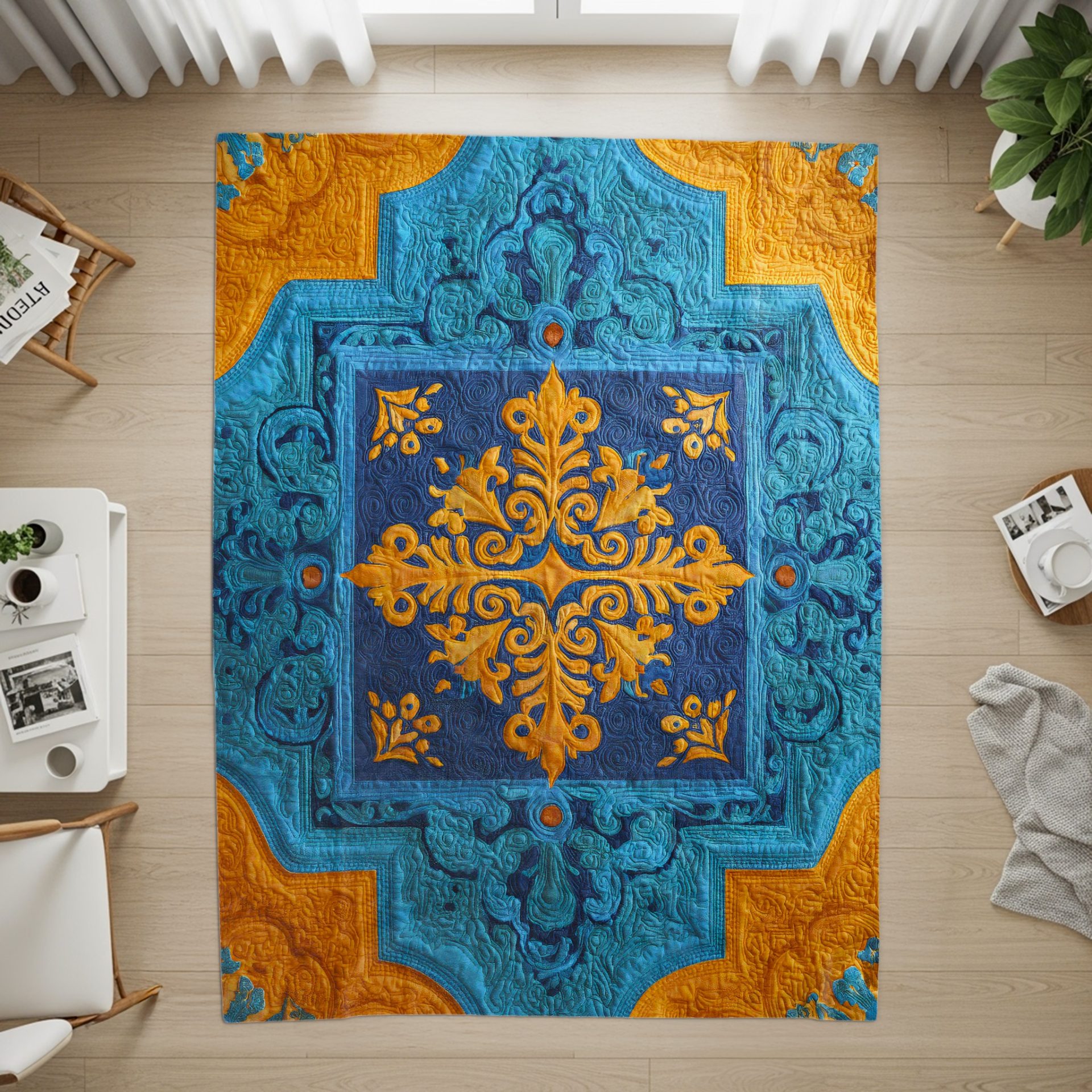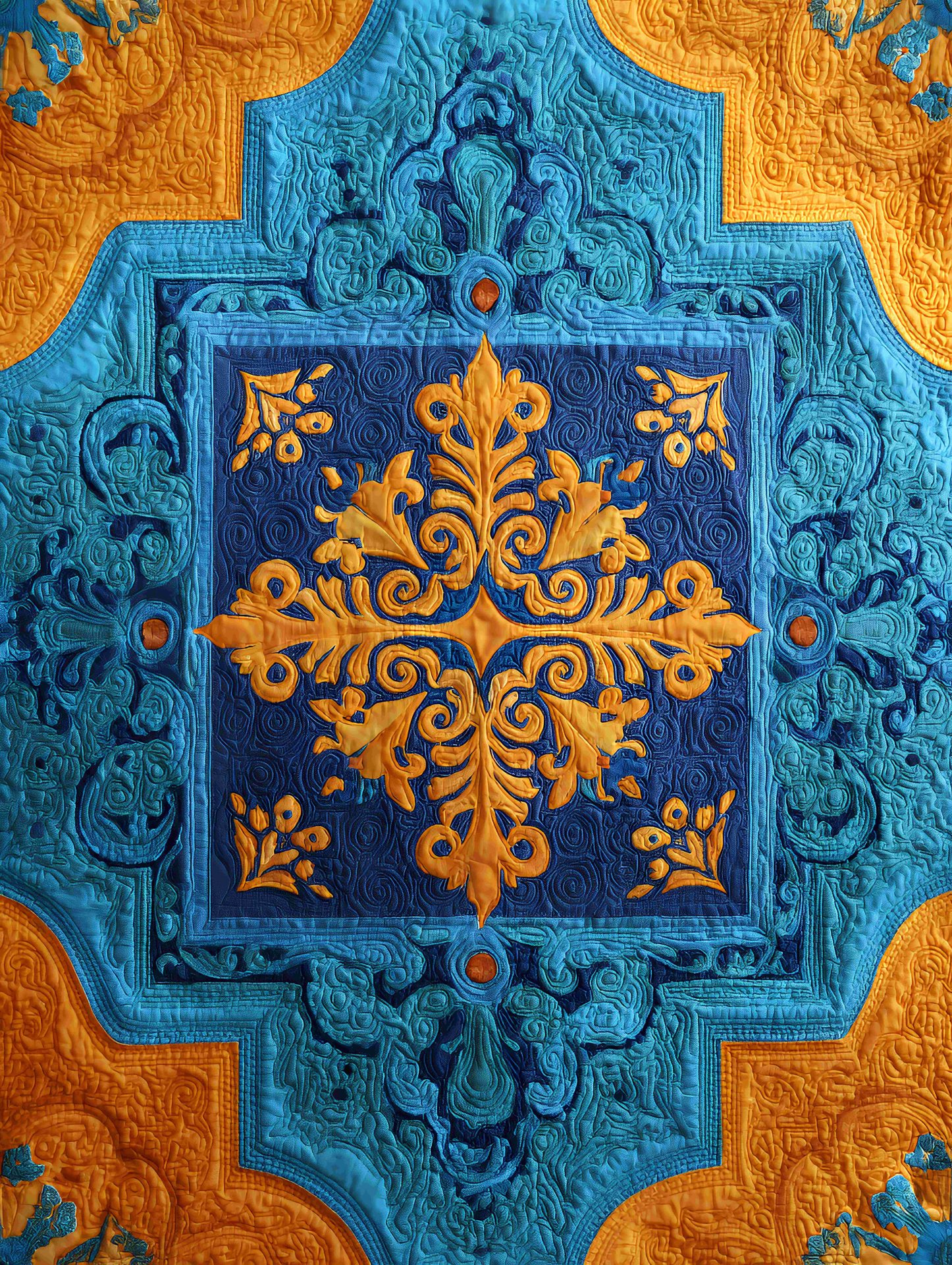 Ornate Floral Designs Center on Blue and Gold Blankets