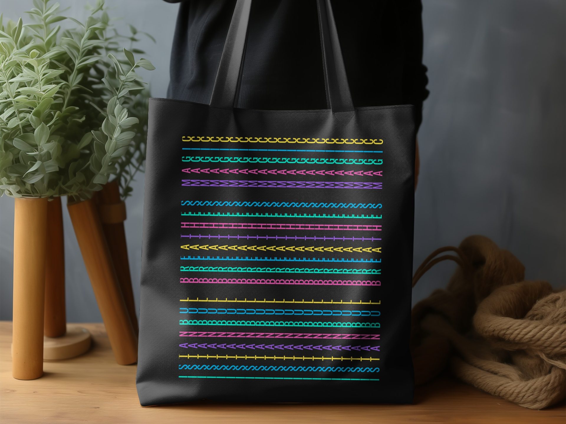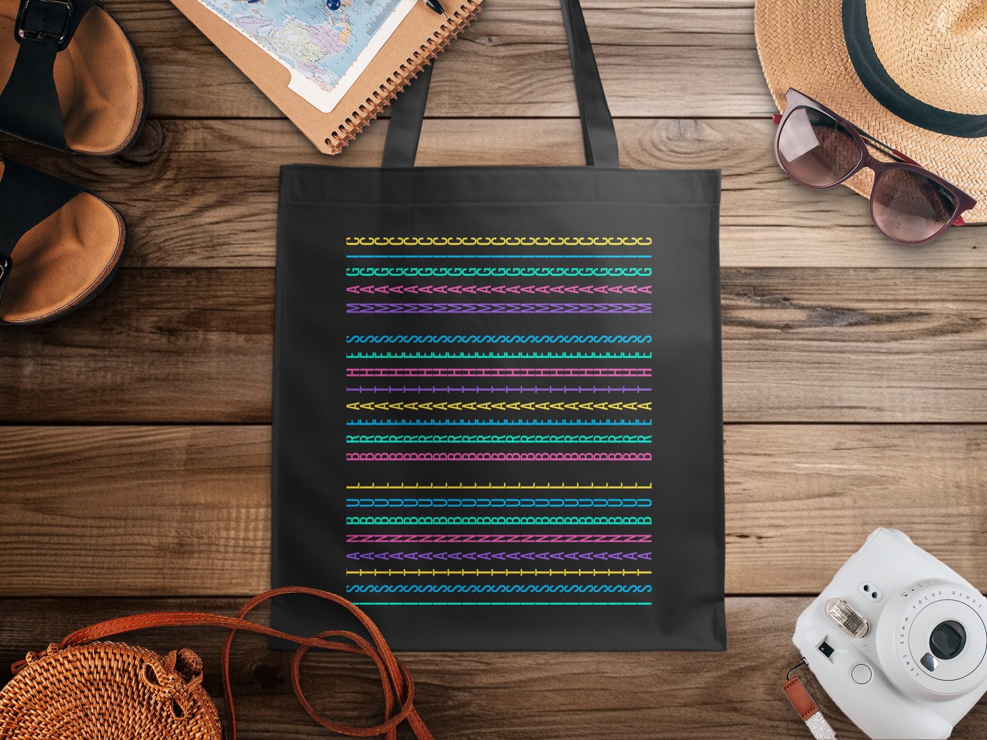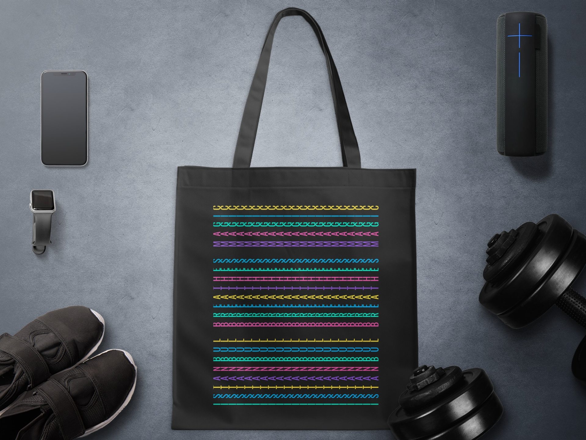 Shop our tote bags featuring repeated colorful alphabetical text patterns! Unique design for every occasion. Express yourself with this stylish accessory. Perfect gift idea!