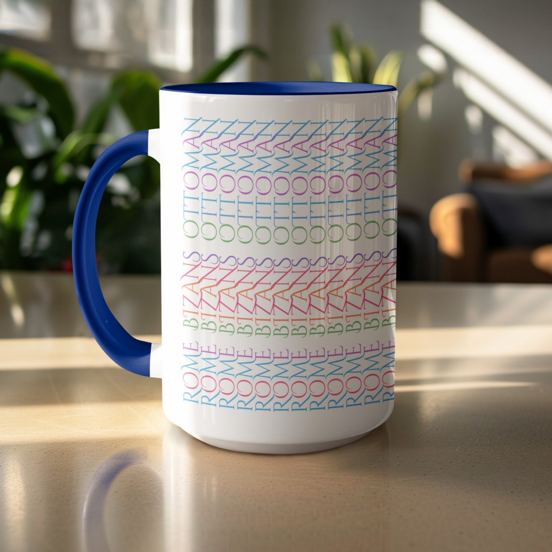 A stylish ROME BIZANS OTTOMAN pattern is creatively placed on this mug. Perfect for daily use or as a decorative item. Enjoy the unique design that enhances your drinking experience.