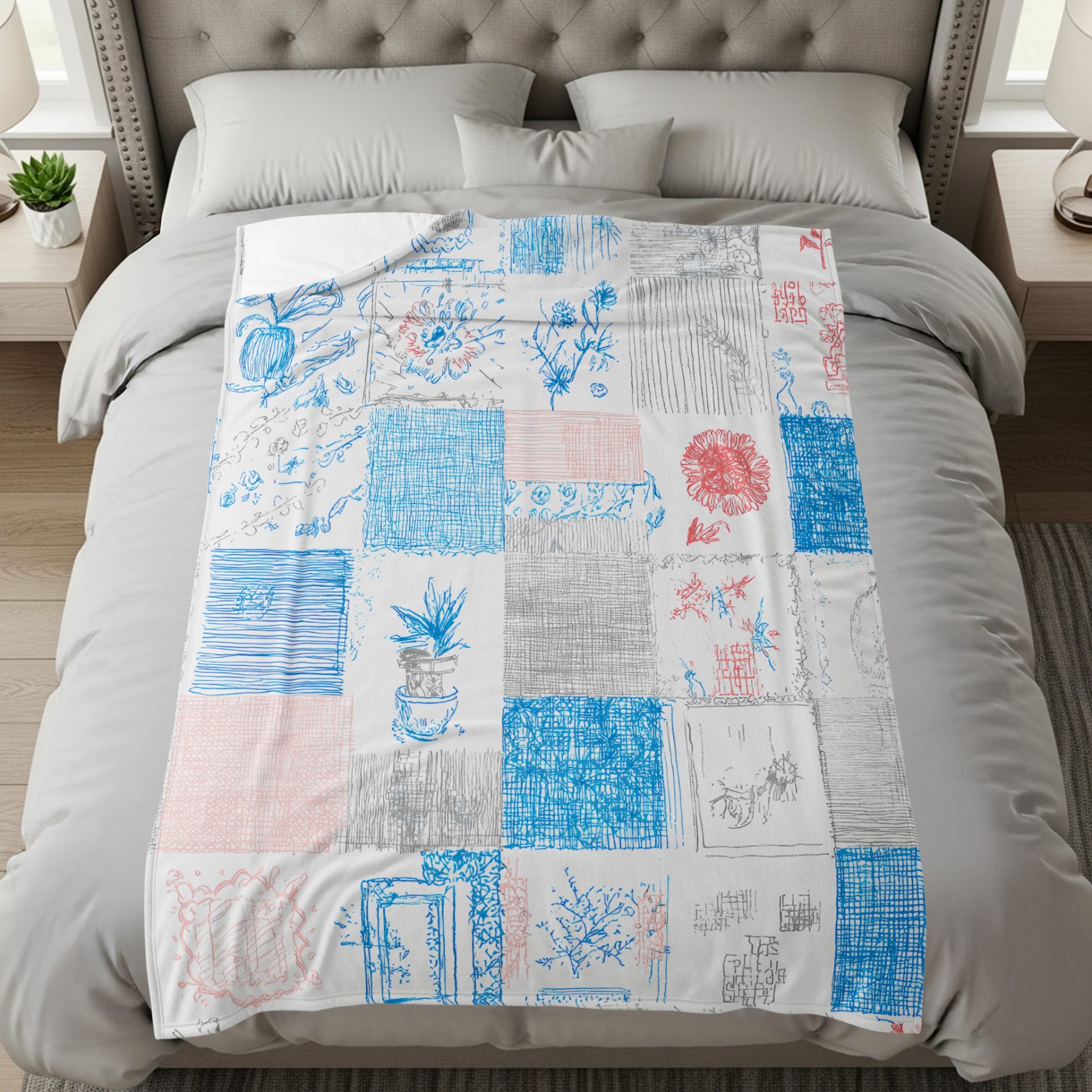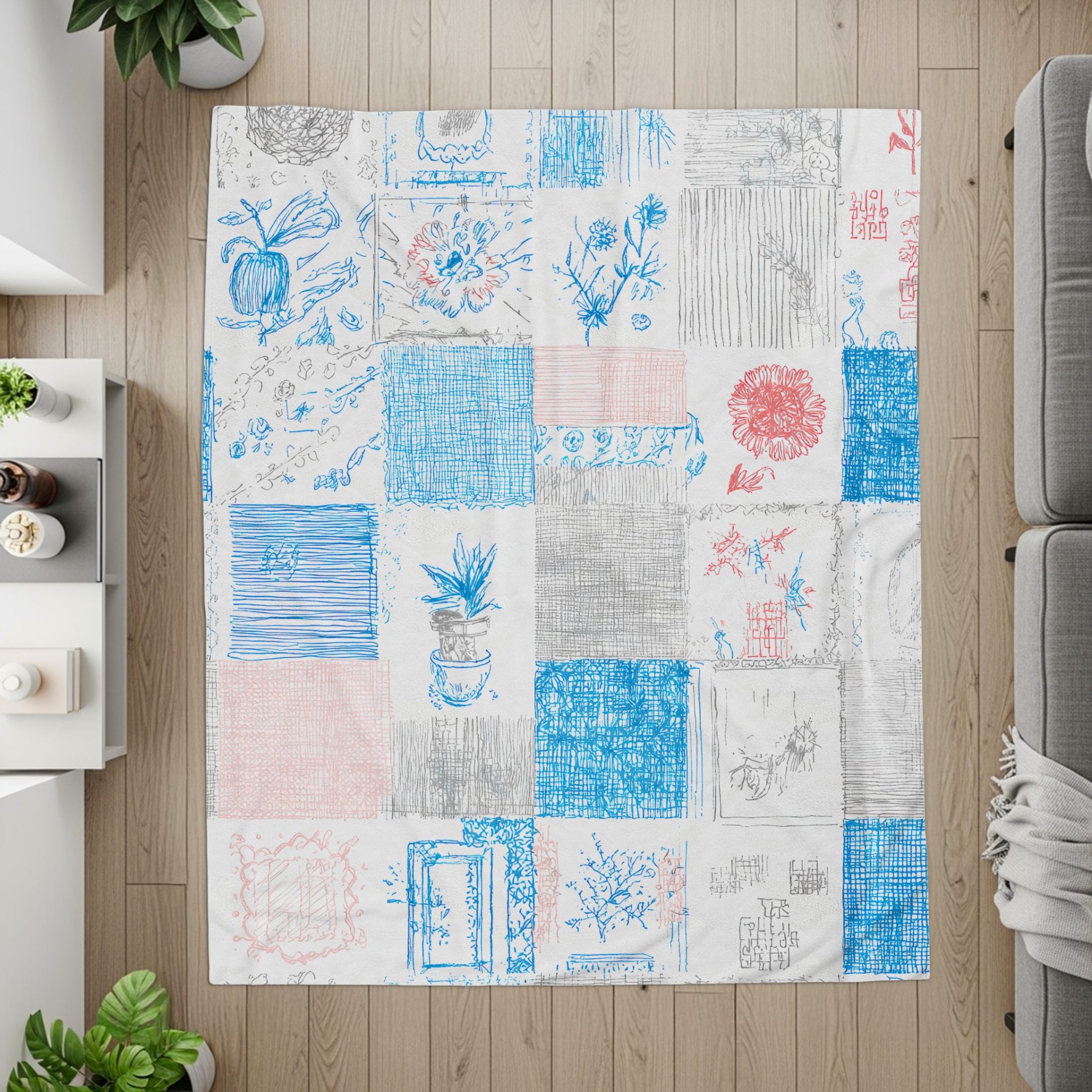 Add a touch of artistic flair to your home with these beautifully designed Blankets featuring a unique patchwork of floral and abstract sketches. These are truly unique and charming.