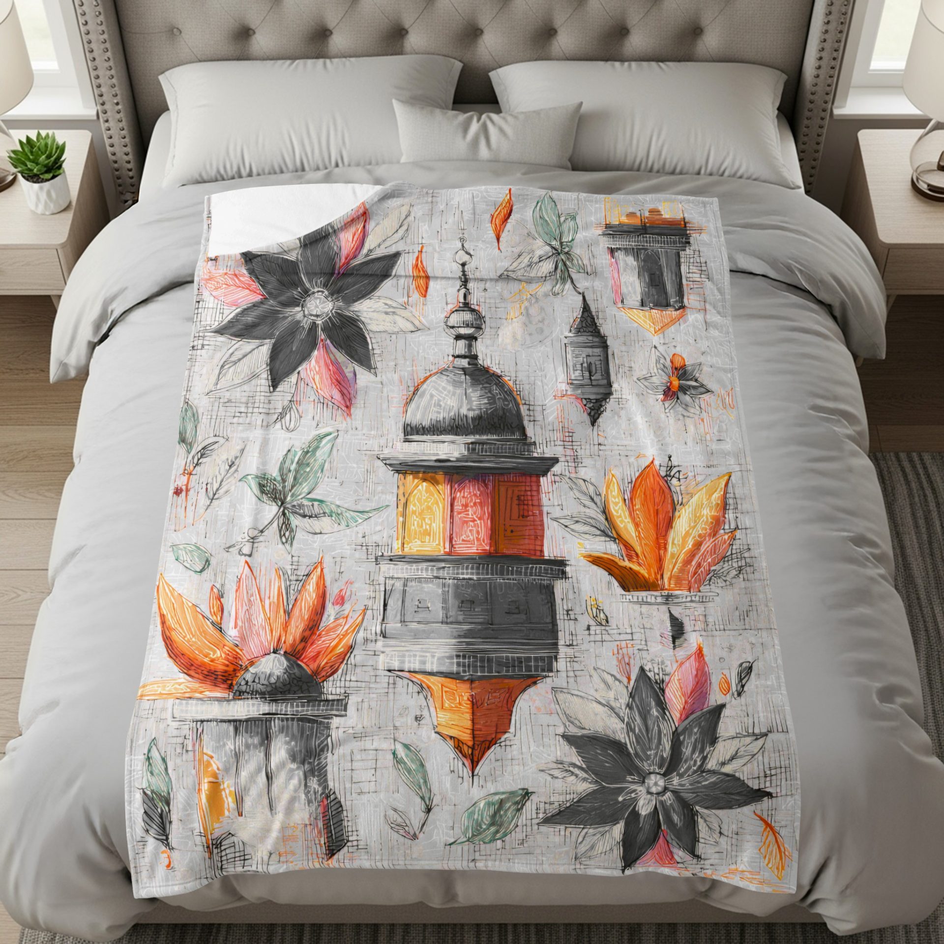 Transform your space with this unique blankets featuring towers flowers and leaves. Artistic design ideal to add an artistic touch to any room. Perfect accent piece!