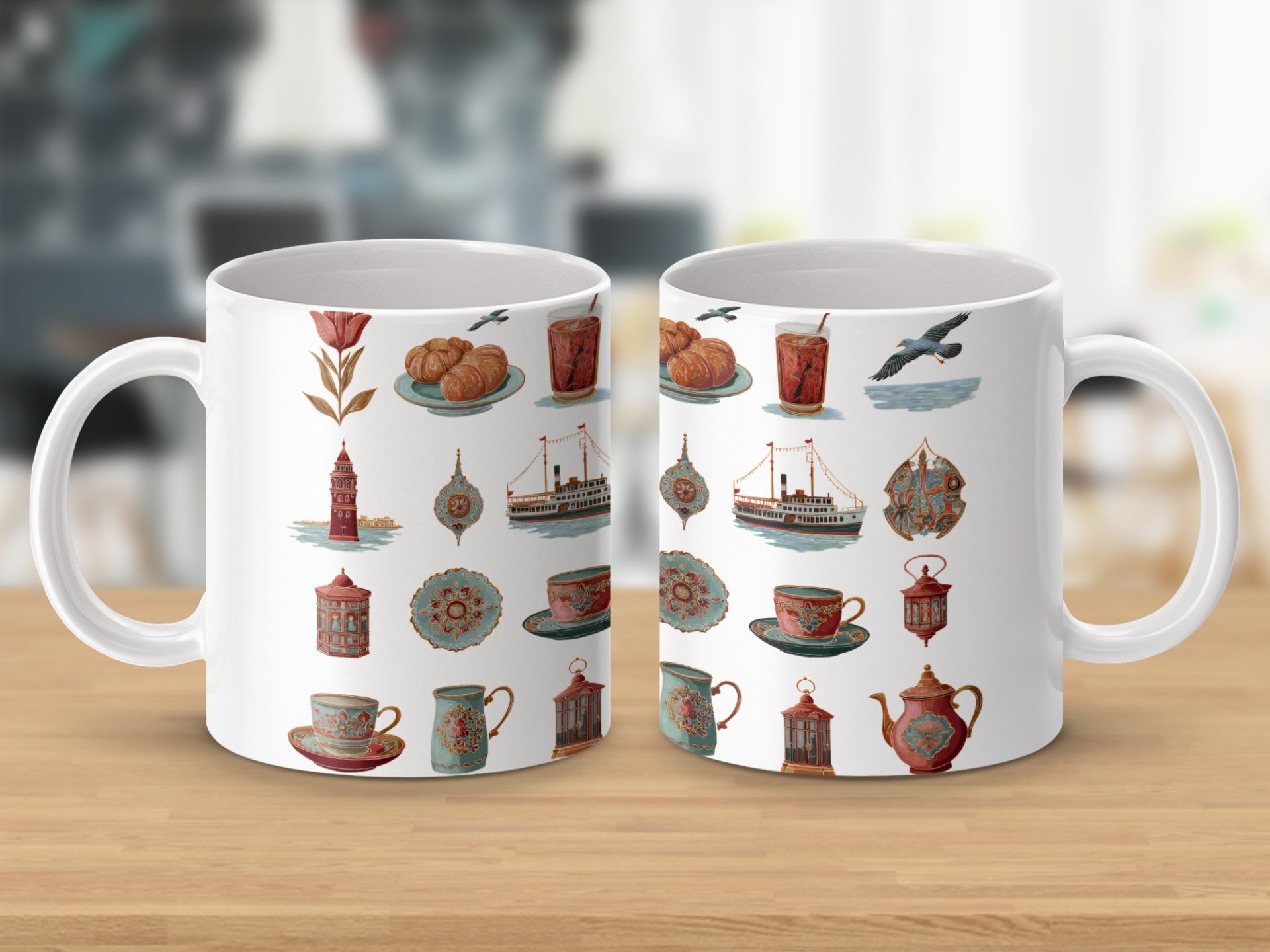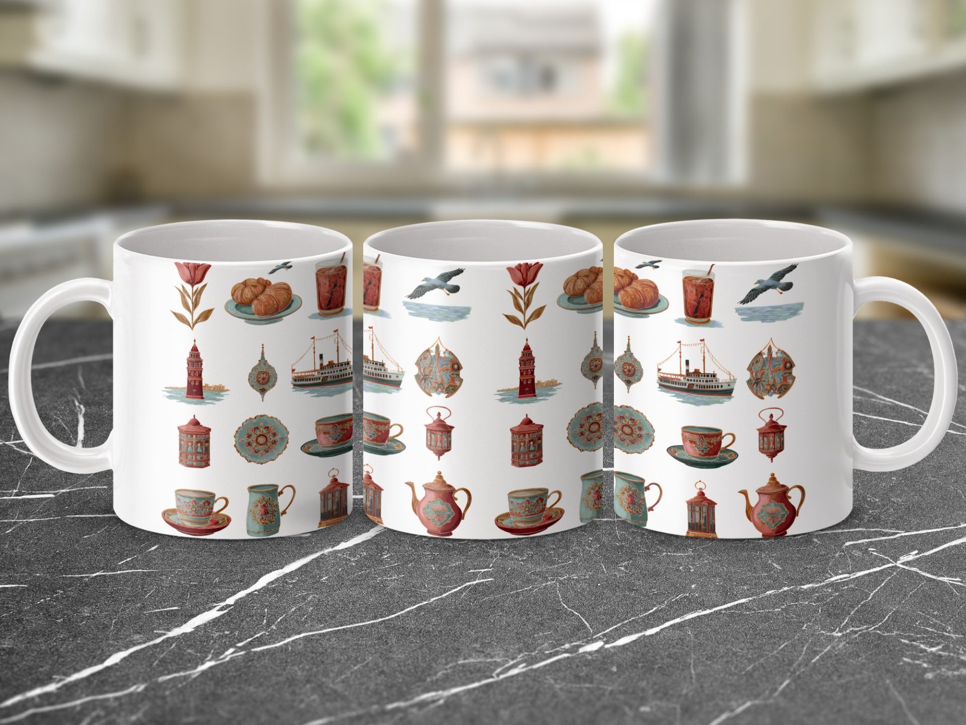 Turkish Inspired Illustrations On White Backdrop Mugs